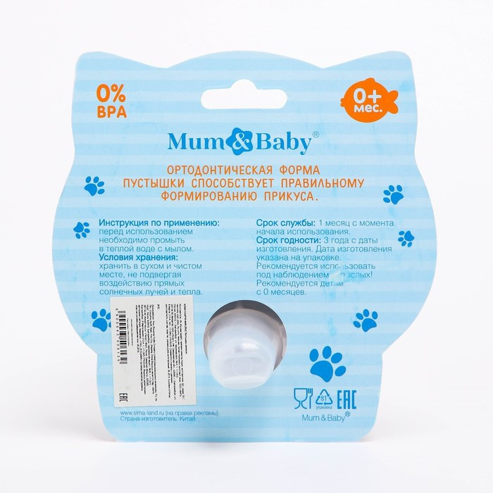 Mum&Baby Пустышка ортодонтическая с колпачком «Котик»-25% +56