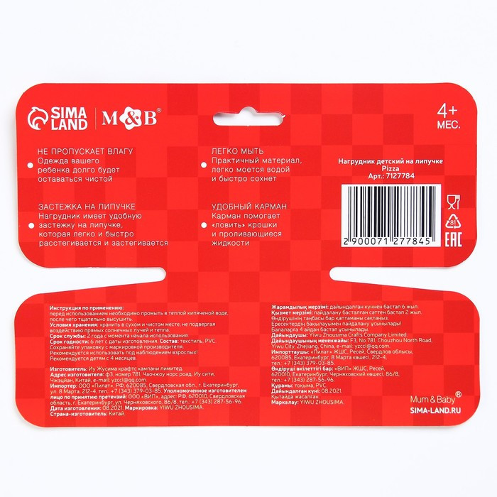 Mum&Baby Нагрудник с кармашком «Pizza»В данный момент этот товар отсутствует в продаже. Возможно, у нас найдется аналогичный или похожий товар здесь. Серия: Food pattern Нагрудник не промокает и качественно защищает, поэтому одежда малыша не испачкается в процессе кормления. У слюнявчика есть специальный кармашек, который выворачивается на лицевую сторону на время приема пищи, в него попадают все крошки: чистым останется не только сам ребёнок, но и место, где он кушает. |
