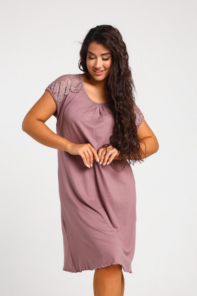 Хорошая ночнушка. К телу приятная, нежная. Хорошо тянется. Симпатичное кружево. Рекомендую. Цвет сухая роза как у меня на 1ом фото.