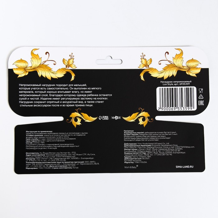 💳 Оплатить за товар можно при получении 🇰🇿 Есть бесплатная доставка по Казахстану 🎁 Копите бонусы с каждой покупки Серия: Baby Gold Collection Непромокаемый нагрудник подходит для крошек, которые учатся кушать самостоятельно. Одежда останется сухой и чистой, а сам малыш сохранит опрятный и аккуратный вид после приёма пищи. Все края изделия обработаны, мягкий материал не натирает и не царапает нежную кожу ребёнка. Товар сертифицирован и безопасен для здоровья. |