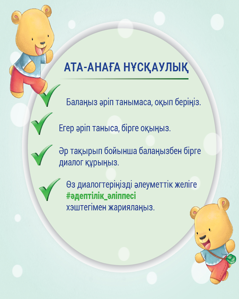 • балаңыз әріп танымаса, оқып беріңіз;
