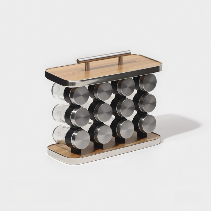💳 Оплатить за товар можно при получении 🇰🇿 Есть бесплатная доставка по Казахстану от 1 дня 🎁 Копите бонусы с каждой покупки Набор для специй на подставке «Модерн». В наборе 12 баночек для специй на подставке. Подставка выполнена из МДФ и металла, баночки из стекла. Благодаря подставке с ручкой, специи не займут много места и легко переносятся на сервированный стол. |