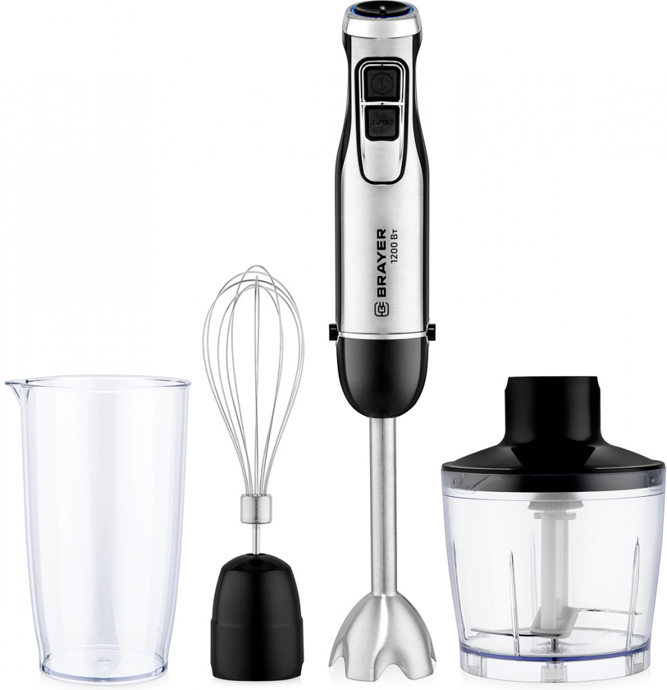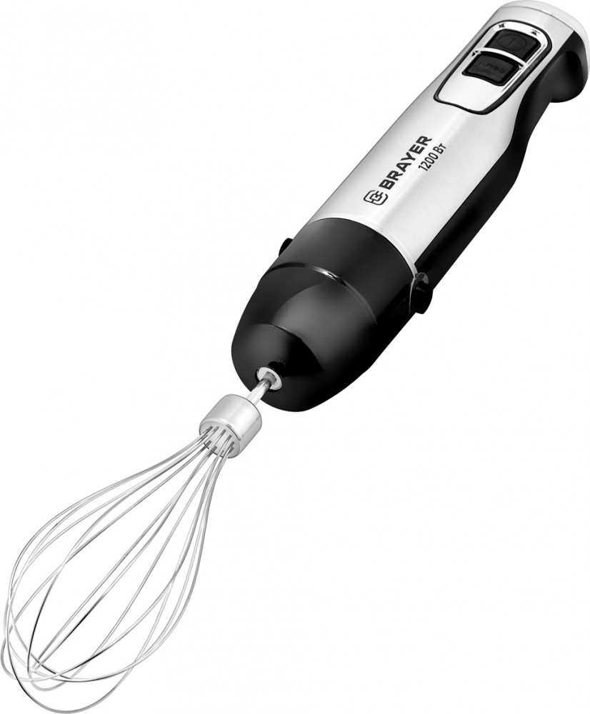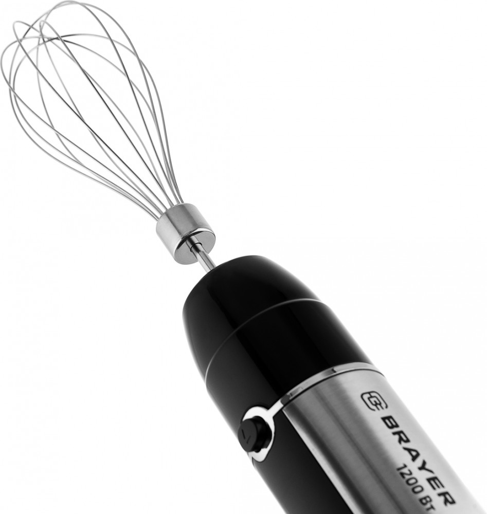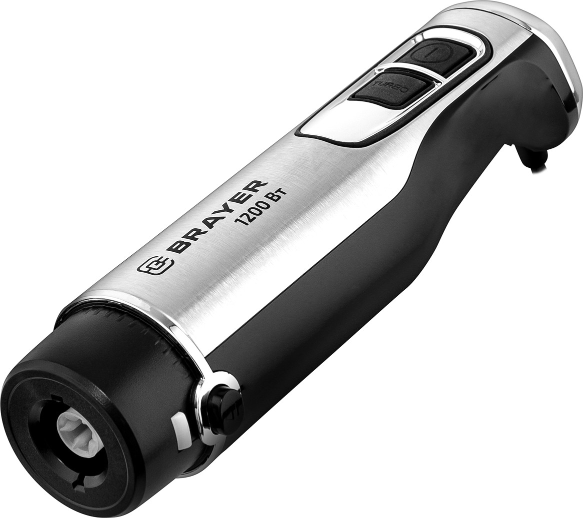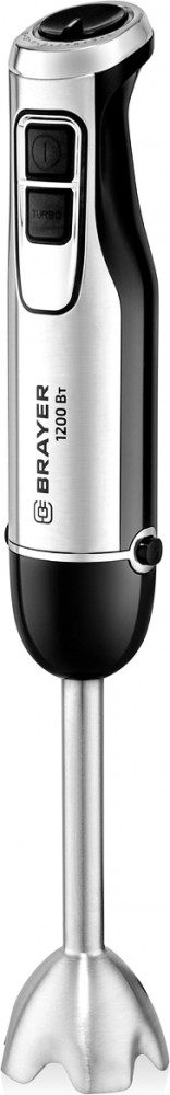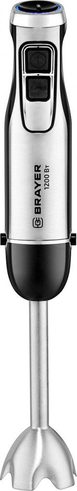 Погружной блендер с мощностью 1200 Вт поможет Вам приготовить разнообразные блюда. У блендера BR1255, 5 скоростей, а также есть функция Турборежима, благодаря чему Вы сможете как взбить тесто, так и перемолоть орехи в измельчителе.