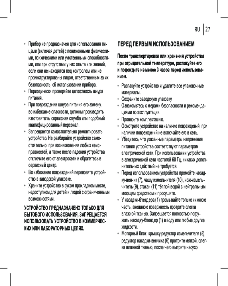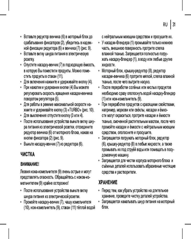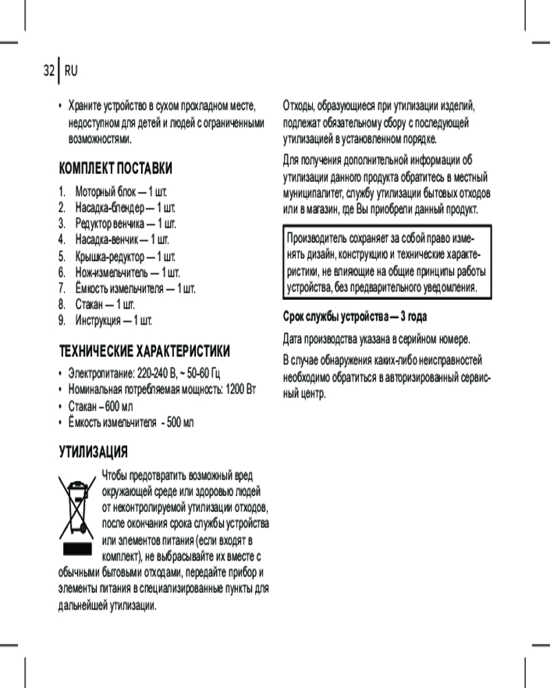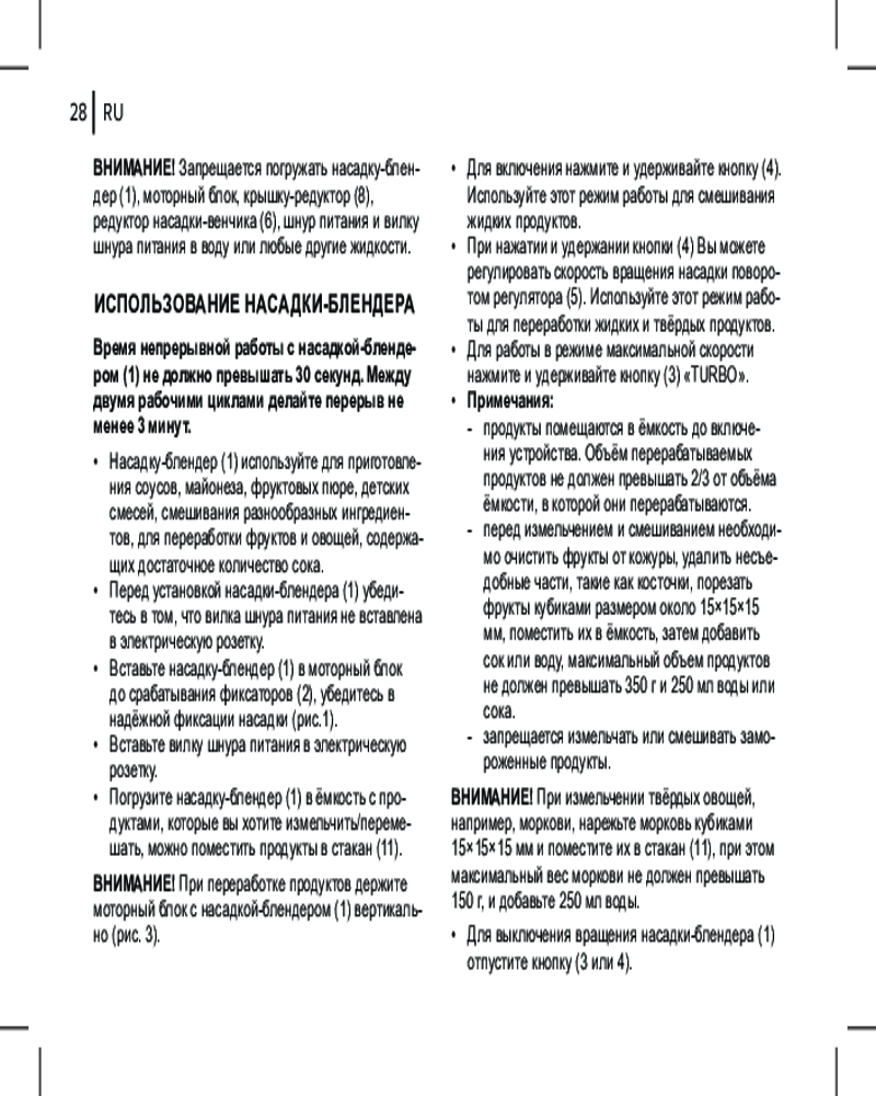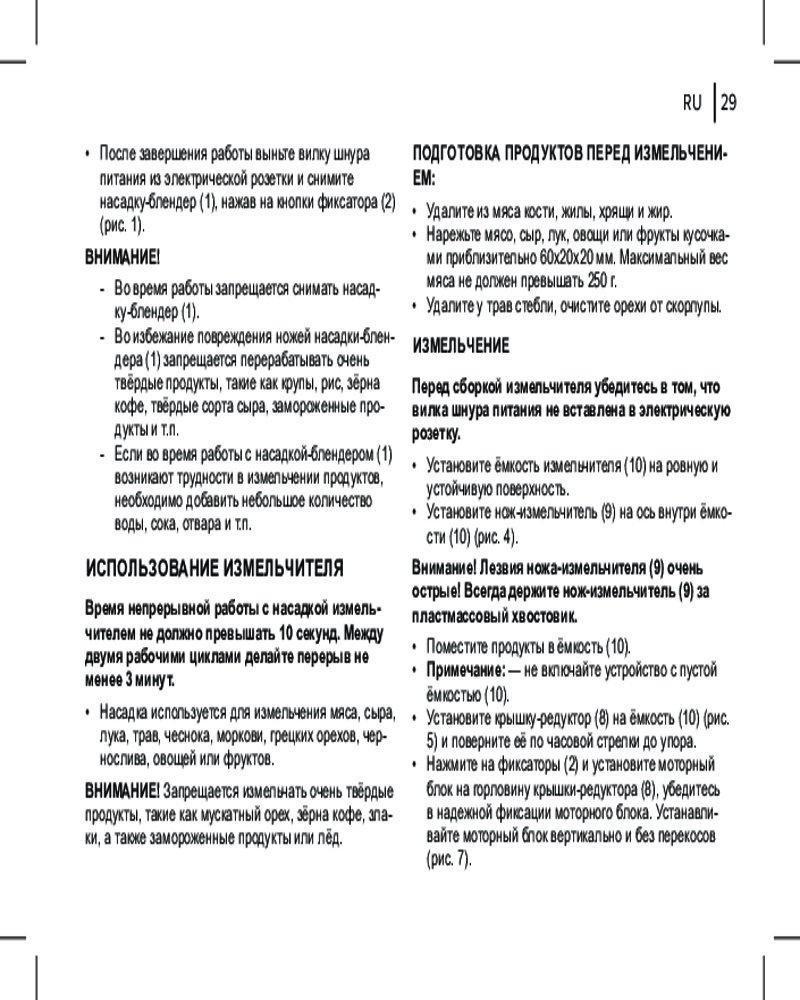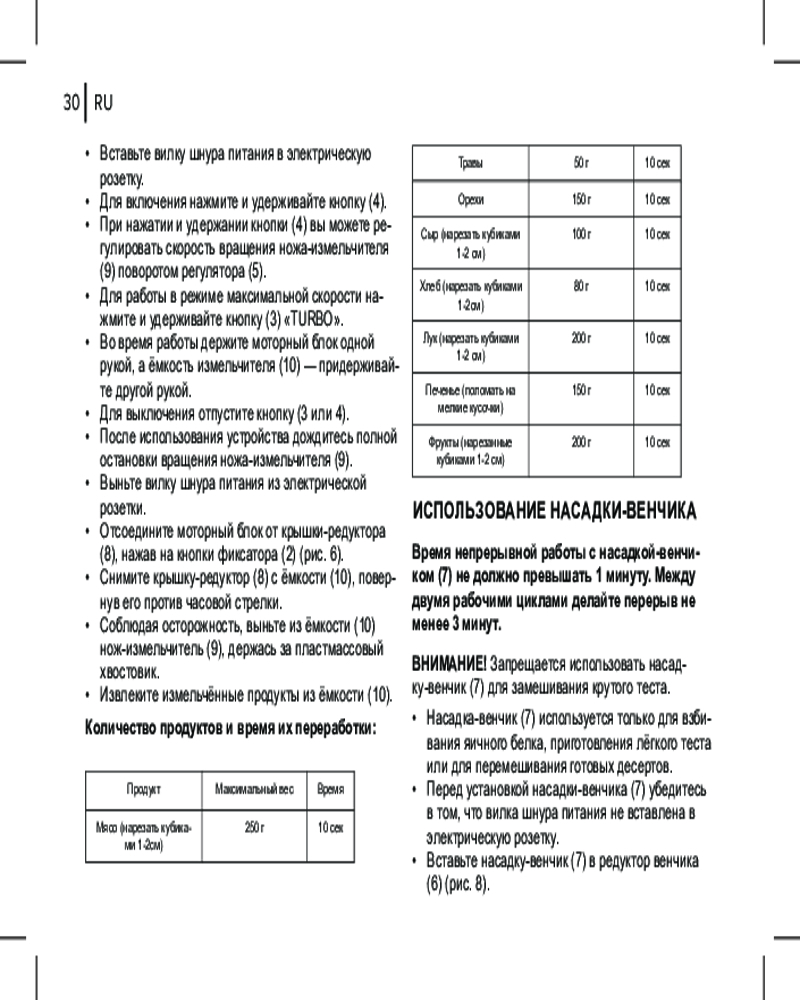 В измельчителе объемом 500 мл Вы сможете нарезать овощи и фрукты, а также порубить орехи. Насадка-венчик для взбивания белков, сливов, жидкого теста. Насадка-блендер для измельчения и смешивания, предназначена для приготовления смузи и фруктового пюре.