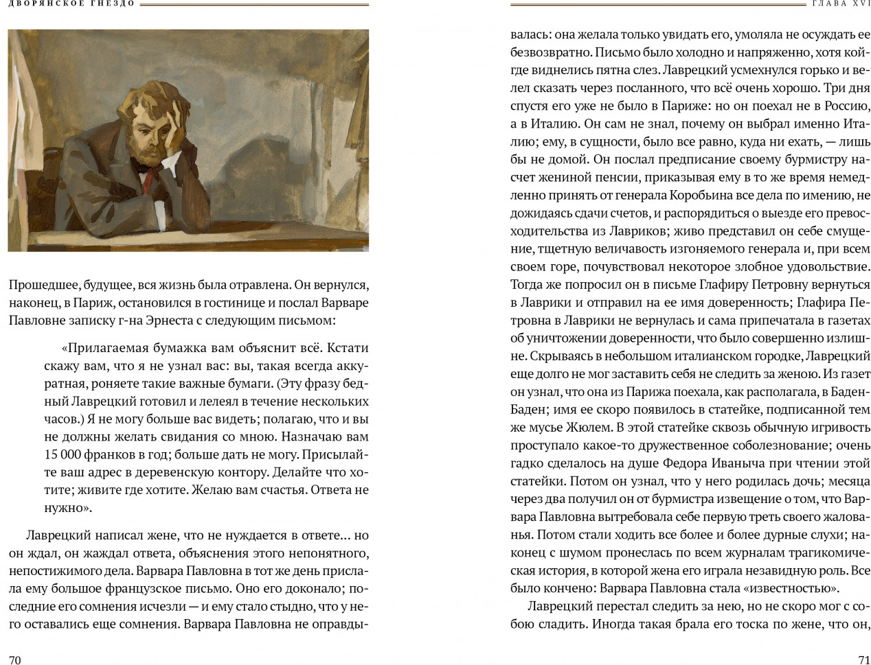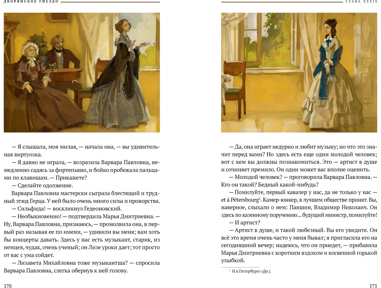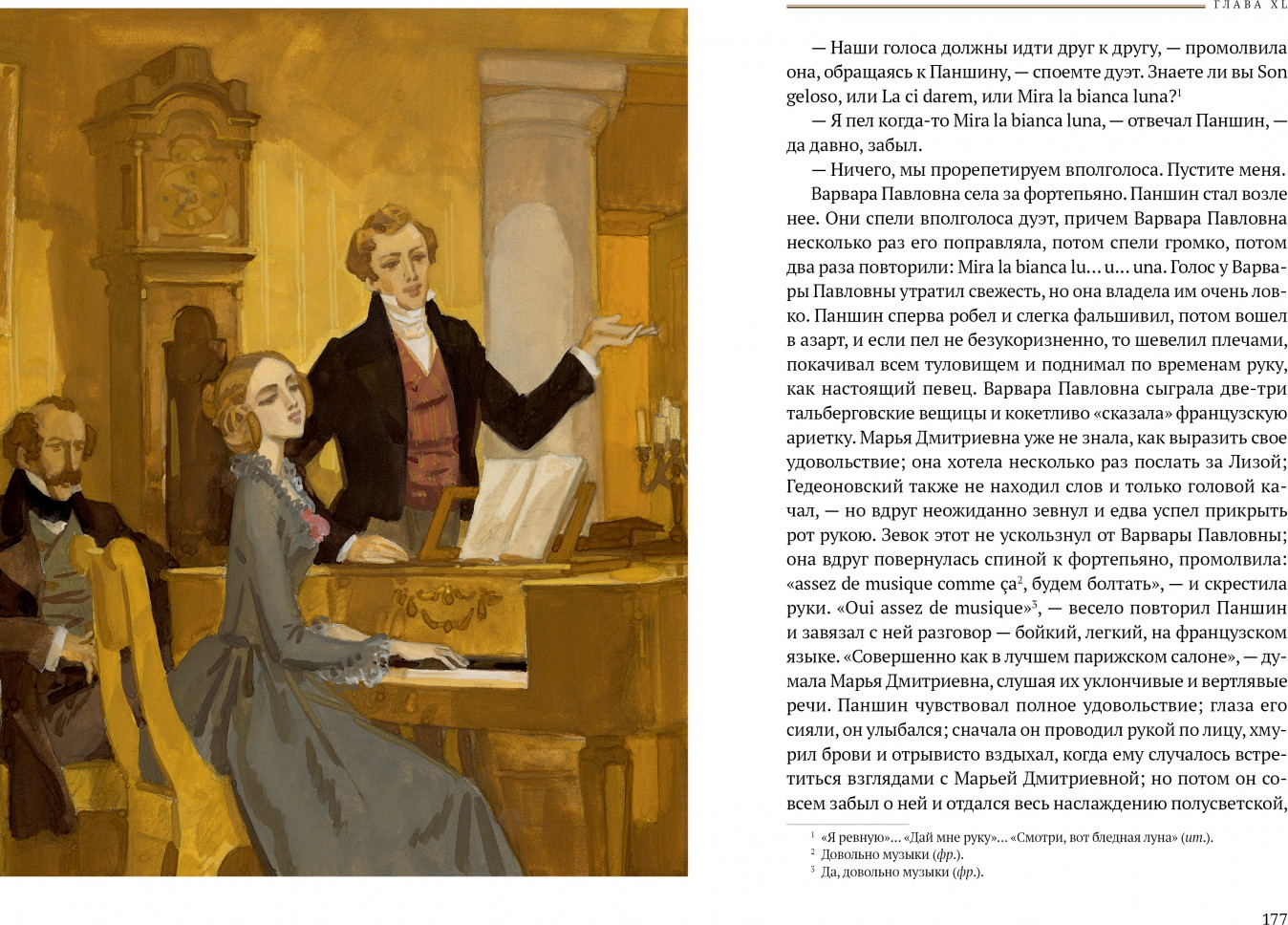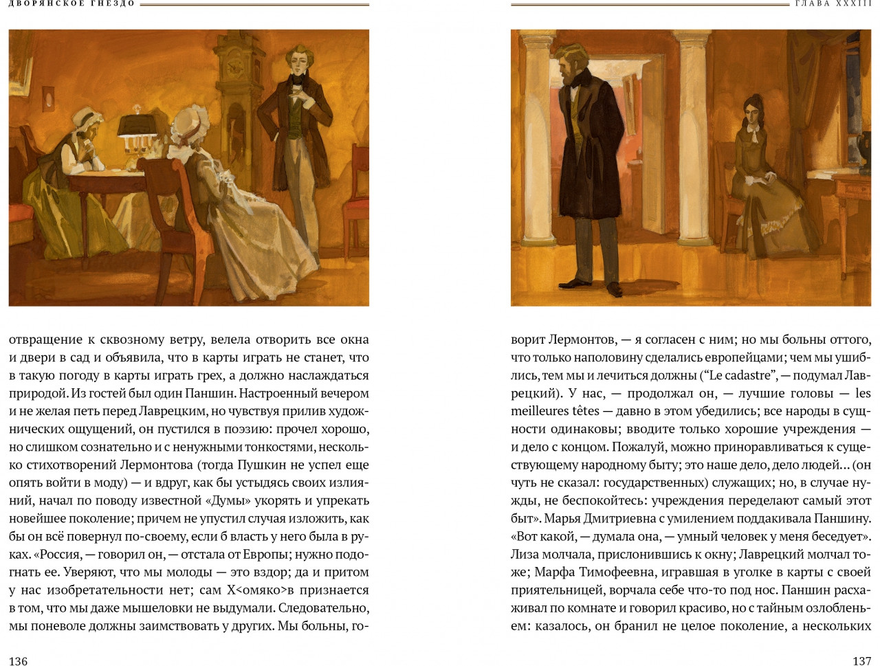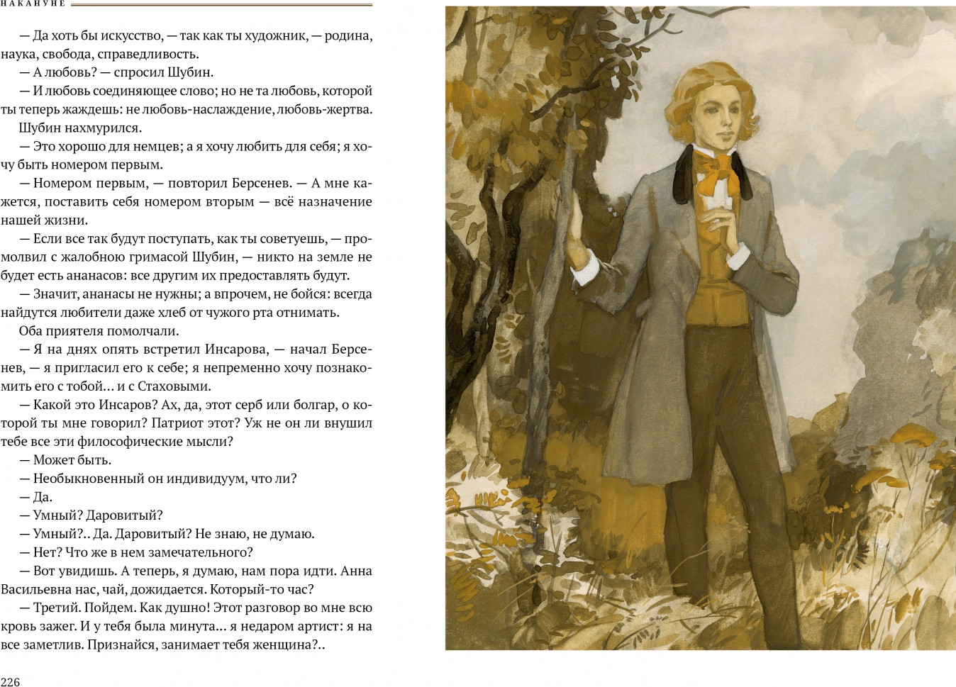 В романе «Накануне» границы между совершенно разными персонажами стираются. Так люди разного склада и с различающимися представлениями о жизни встречаются на пороге своего будущего и нового дня. Читатели в издании также увидят рисунки Владимира Панова — московского мастера книжной иллюстрации, который за свою жизнь оформил и проиллюстрировал более двухсот книг. В том числе художник известен работами по русской классике. |