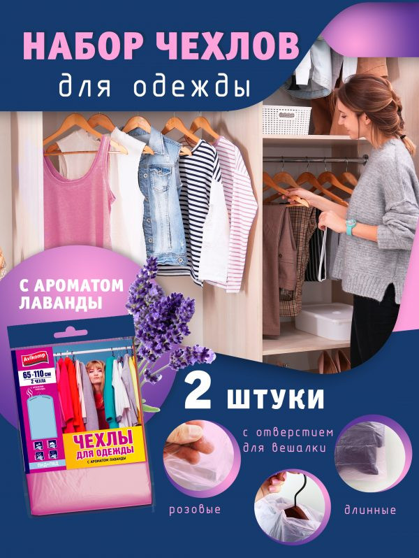 Avikomp Набор чехлов для одежды с ароматом лаванды+13 удобство хранения длинные 2 шт резкий запах тонкий материал