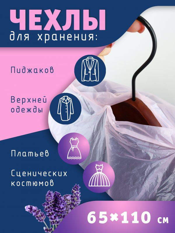 💳 Оплатить за товар можно при получении 🇰🇿 Есть бесплатная доставка по Казахстану от 1 дня 🎁 Копите бонусы с каждой покупки Чехлы для одежды с ароматом лаванды изготовлены из двухслойного полиэтилена, который надежно защищает содержимое от загрязнений и влаги. При производстве чехлов используется специальная добавка — отдушка «Лаванда». Тонкий аромат создает благоприятный микроклимат для хранения вещей: запах лаванды освежает одежду в течение длительного времени и эффективно отпугивает моль, что особенно важно при хранении изделий из шерсти и меха. |