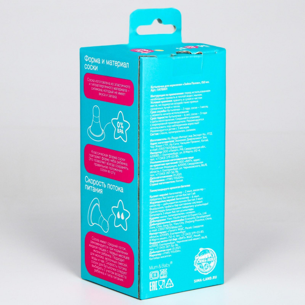 💳 Оплатить за товар можно при получении 🇰🇿 Есть бесплатная доставка по Казахстану 🎁 Копите бонусы с каждой покупки Серия: Зайка Полли Максимальный комфорт при вскармливании малыша. Бутылочка имеет мягкую и гибкую соску, которая не слипнется и будет удобно располагаться у малыша во рту. |