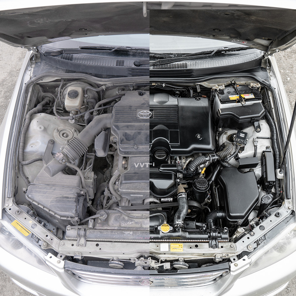• эффективно очищает двигатель от всех видов загрязнений: масляных пятен, тормозной жидкости, дорожной грязи и т.д.;
