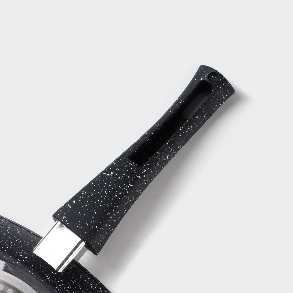 💳 Оплатить за товар можно при получении 🇰🇿 Есть бесплатная доставка по Казахстану от 1 дня 🎁 Копите бонусы с каждой покупки Серия: Dark Сковорода-гриль изготовлена из кованого алюминия, имеет прочное антипригарное покрытие с вкраплениями мраморных частиц. В такой посуде удобно жарить, тушить, она прекрасно сохраняет сочность мяса, рыбы, птицы и овощей. |