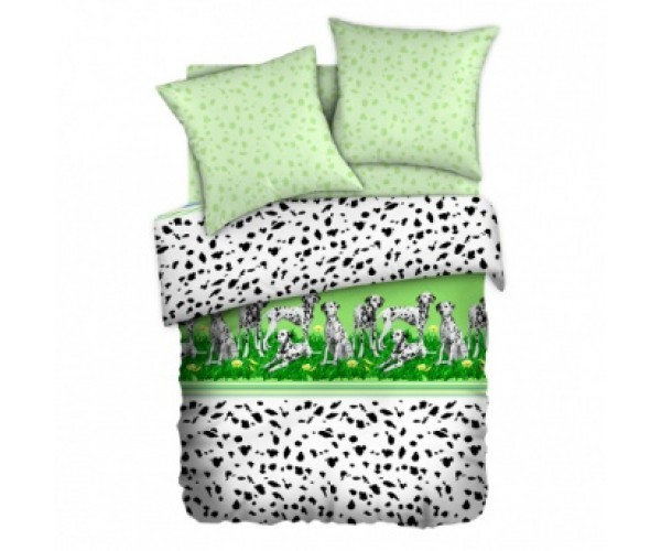Комплект хороший. Ткань мягкая. После стирки не полинял и не сел. Единственный минус наволочка и простыня зелёного цвета с белыми пятнышками, без рисунка.