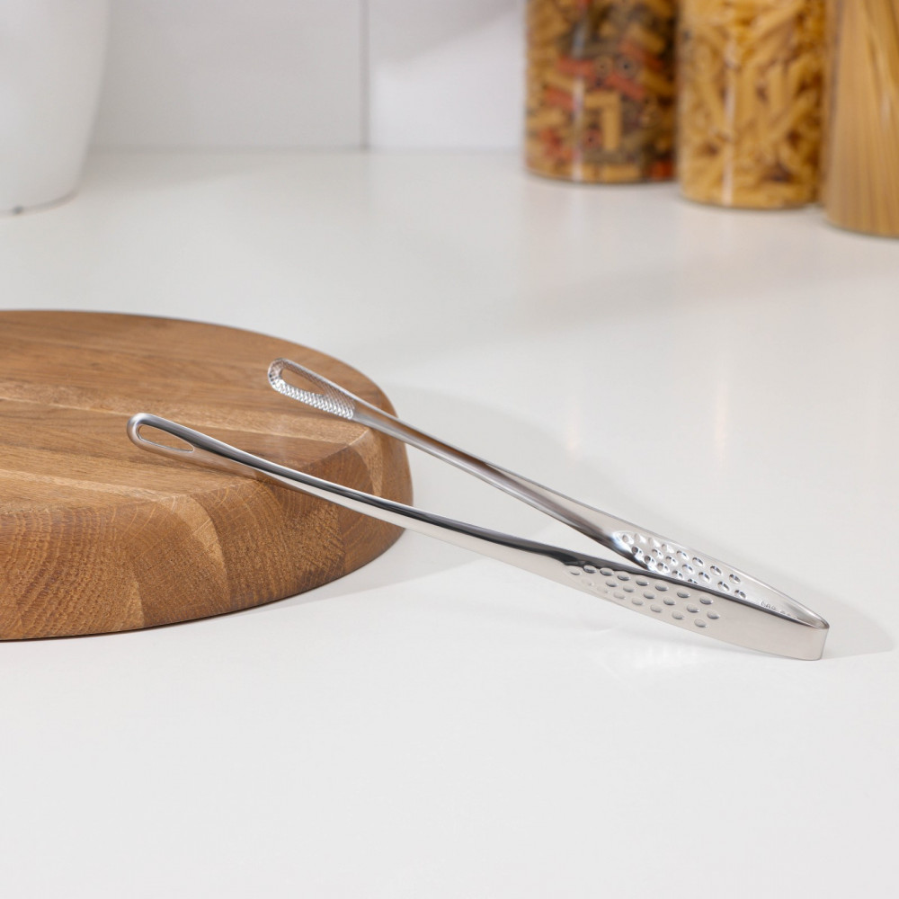 Кулинарные щипцы — это удобный современный многофункциональный предмет, который станет прекрасным помощником в жарке стейков, рыбы и других жареных блюд, любителям спагетти. Щипцами также можно сервировать блюда к подаче - они гораздо удобнее ложек в сервировке салатов, пасты и любых других готовых блюд. Щипцы 27,9 см выполнены из коррозионностойкой стали, которая не впитывает неприятные запахи и легко моется.