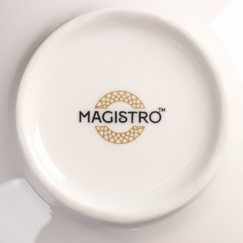 Посуда Magistro серии «La Perle» покорит лаконичным дизайном и молочной белизной натурального фарфора. Современная форма предметов подчеркнута элегантной серебряной окантовкой. Изделия из линейки La Perle можно использовать как в повседневной, так и в праздничной сервировке. Посуда станет чудесным подарком и дополнит коллекцию столового семейного фарфора.