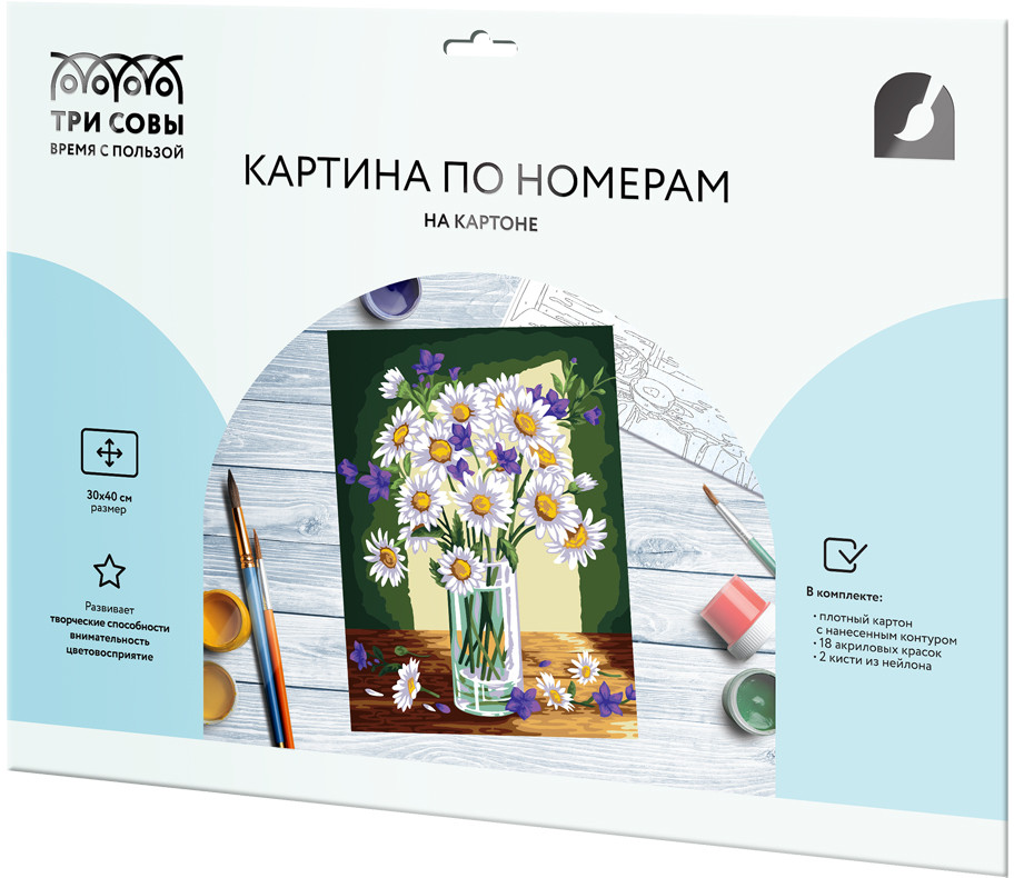Картина по номерам на картоне бренда «Три совы» будет одинаково интересна детям и взрослым.