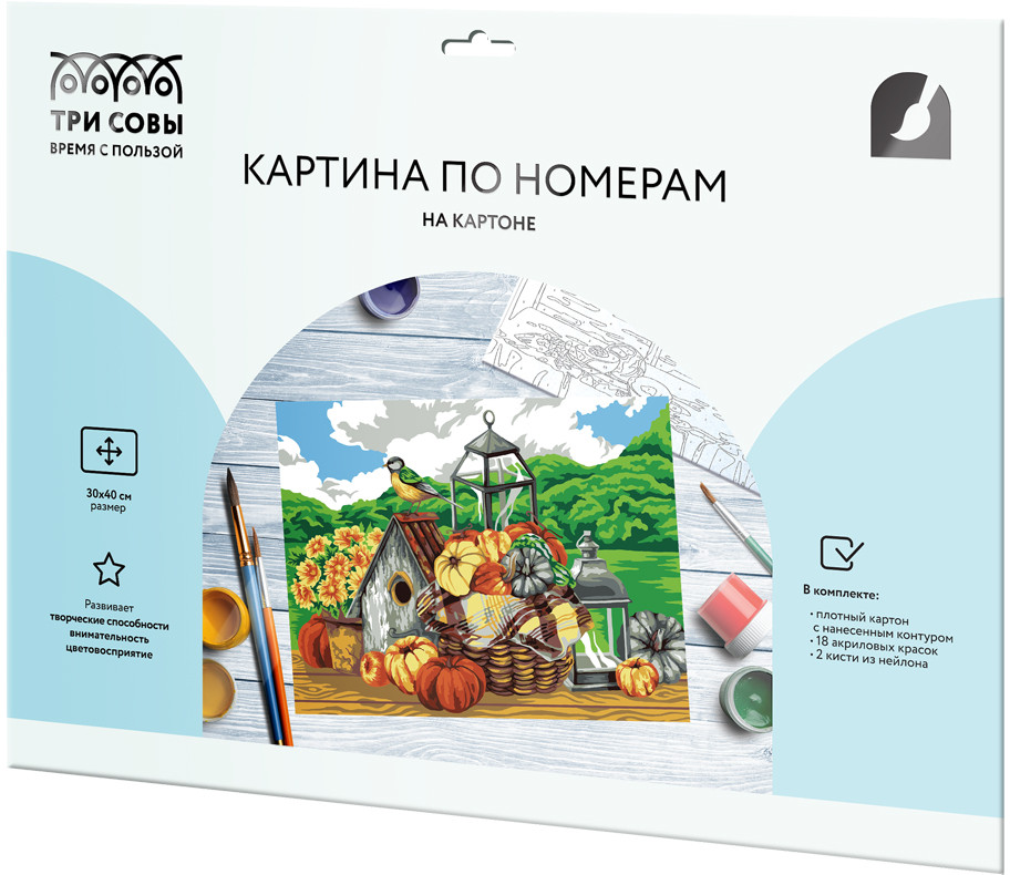 Картина по номерам на картоне бренда «Три совы» будет одинаково интересна детям и взрослым.