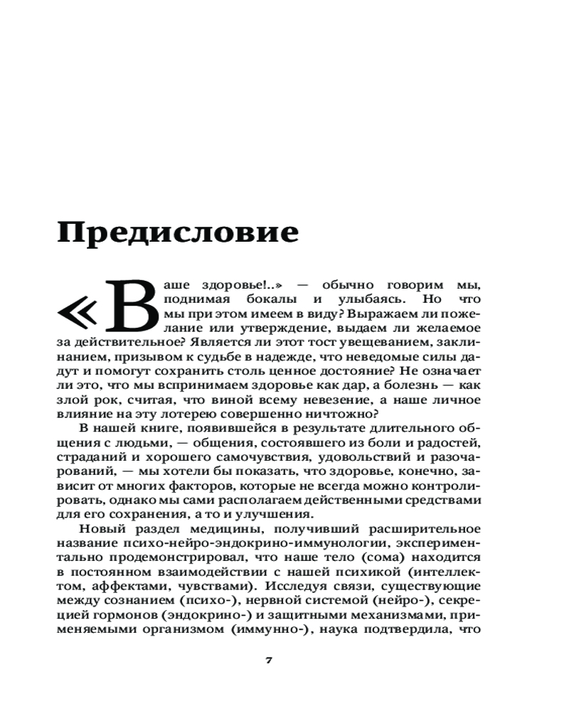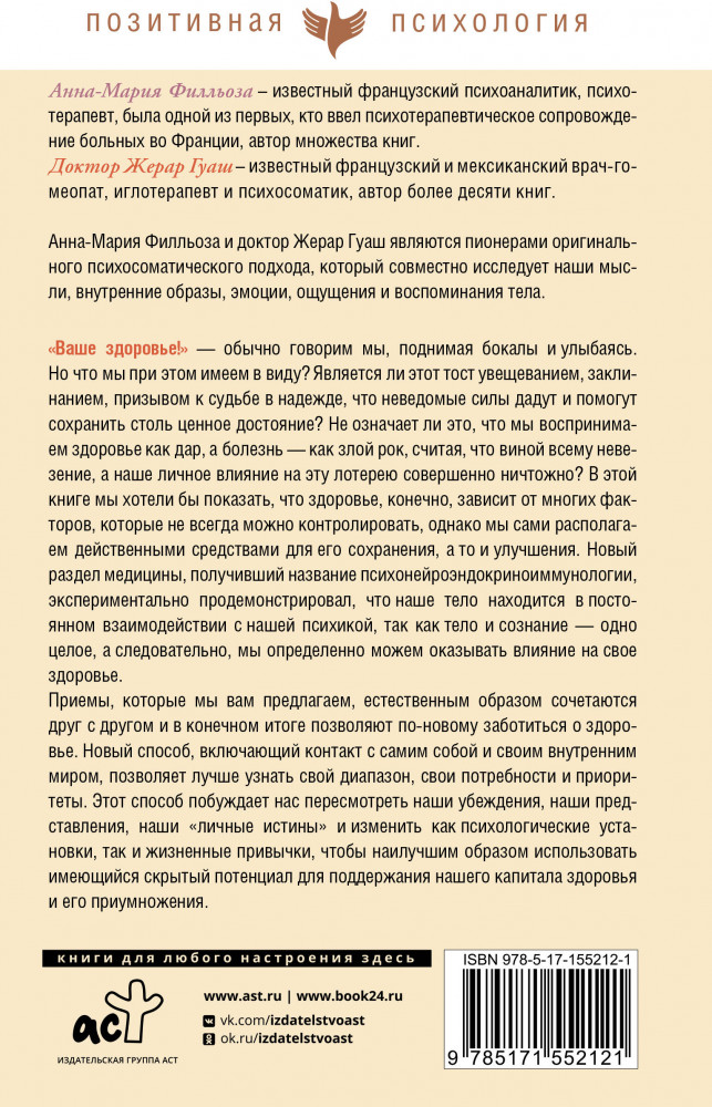 💳 Оплатить за товар можно при получении 🇰🇿 Есть бесплатная доставка по Казахстану от 1 дня 🎁 Копите бонусы с каждой покупки Серия: Позитивная психология. Изабель Филльоза и др. «Ваше здоровье!..» — обычно говорим мы, поднимая бокалы и улыбаясь. Но что мы при этом имеем в виду? Является ли этот тост увещеванием, заклинанием, призывом к судьбе в надежде, что неведомые силы дадут и помогут сохранить столь ценное достояние? Не означает ли это, что мы воспринимаем здоровье как дар, а болезнь — как злой рок, считая, что виной всему «невезение», а наше личное влияние на эту лотерею совершенно ничтожно? В этой книге, появившейся в результате длительного общения с людьми — общения, состоявшего из боли и радостей, страданий и хорошего самочувствия, удовольствий и разочарований, — мы хотели бы показать, что здоровье, конечно, зависит от многих факторов, которые не всегда можно контролировать, однако мы сами располагаем действенными средствами для его сохранения, а то и улучшения. Новый раздел медицины, получивший расширительное название психонейроэндокриноиммунологии, экспериментально продемонстрировал, что наше тело находится в постоянном взаимодействии с нашей психикой, так как тело и сознание — одно целое, а следовательно мы определенно можем оказывать влияние на свое здоровье. |