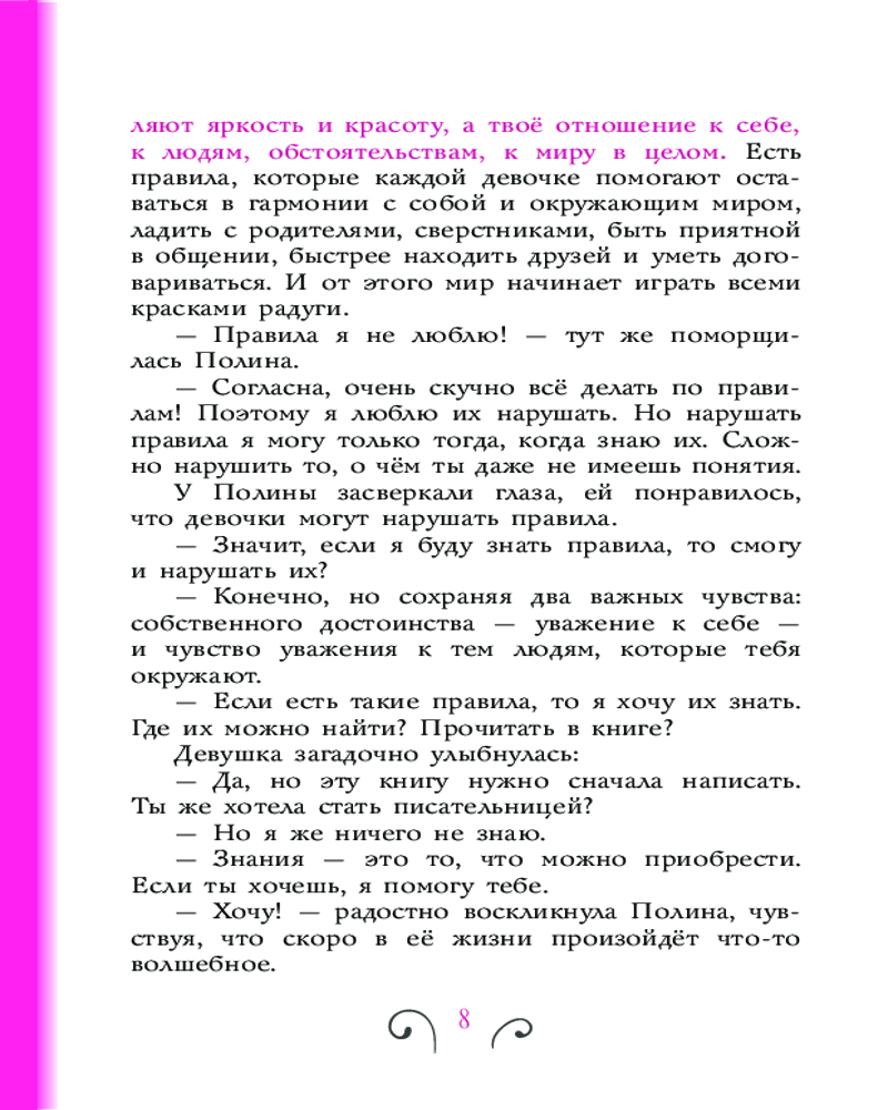 💳 Оплатить за товар можно при получении 🇰🇿 Есть бесплатная доставка по Казахстану от 1 дня 🎁 Копите бонусы с каждой покупки Серия: Полезные книги для девочек Зачем нужен этикет? Только свобода и никаких скучных церемоний! Так считала героиня этой необычной истории. В канун своего двенадцатого дня рождения Полина оказалась в сказочной школе этикета. Вместе с наставницей Ольгой девочка научится выражать благодарность и сочувствие, правильно вести себя за столом, следить за своим внешним видом, общаться с мальчиками, дарить и принимать подарки, говорить по телефону, переписываться в социальных сетях и не только... А главное — Полина поймёт, что знание правил этикета делает мир вокруг радостным и доброжелательным. Книга основана на программе школы этикета Ольги Бенуа. Она обязательно поможет всем девчонкам стать настоящими леди! Для среднего школьного возраста. |