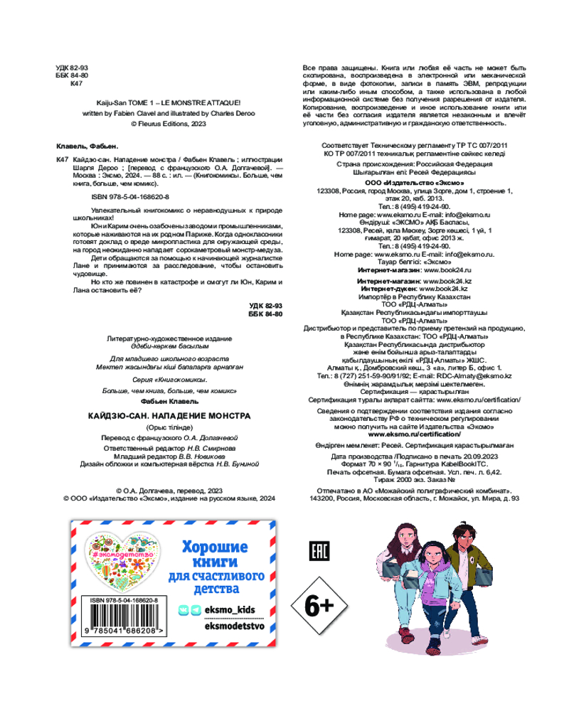 💳 Оплатить за товар можно при получении 🇰🇿 Есть бесплатная доставка по Казахстану от 1 дня 🎁 Копите бонусы с каждой покупки Серия: Книгокомиксы. Больше, чем книга, больше, чем комикс Юн — 12-летняя школьница, живущая даже слишком обычной жизнью. Однажды, когда она готовит проект об экологии вместе с суровым одноклассником Каримом, на её дом нападает огромное чудовище с щупальцами, напоминающее медузу. Монстр начинает уничтожать город, но дети уверены, что смогут помешать ему. Заручившись поддержкой Ланы, блогера и будущей журналистки, Юн и Карим намерены выяснить, откуда взялась сорокаметровая медуза и как её остановить. Смогут ли дети спасти Париж? Неужели монстр — это «кайдзю», существо из японской культуры? И как с надвигающейся катастрофой связан микропластик? |