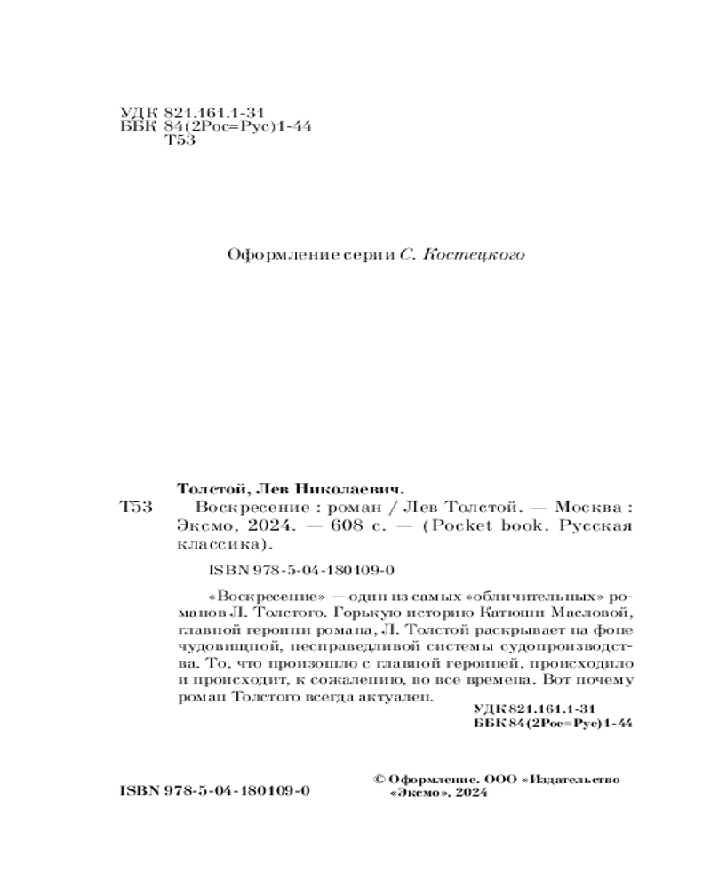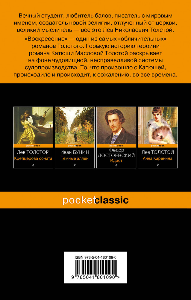 ВоскресениеВ данный момент этот товар отсутствует в продаже. Возможно, у нас найдется аналогичный или похожий товар здесь. Серия: Pocket book (обложка). Русская классика Вечный студент, любитель балов, писатель с мировым именем, создатель новой религии, отлученный от церкви, великий мыслитель, к концу жизни покинутый всеми, — все это Лев Николаевич Толстой. Создатель «Войны и мира», «Анны Карениной» и «Воскресения» никак не предполагал, что его книги станут гигантскими бестселлерами. Сегодня Толстой — среди самых модных писателей в мире. |