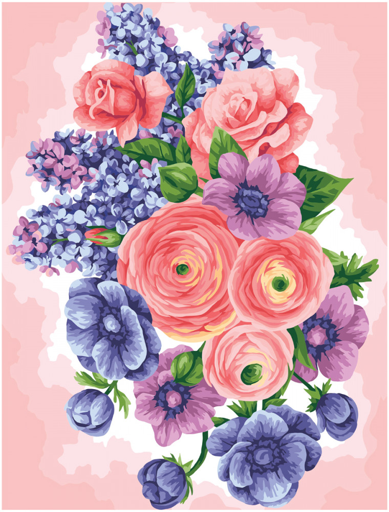 • плотный картон с тиснением под холст размером 30×40 см с нанесенным контуром, пронумерованный в соответствии с номерами красок;