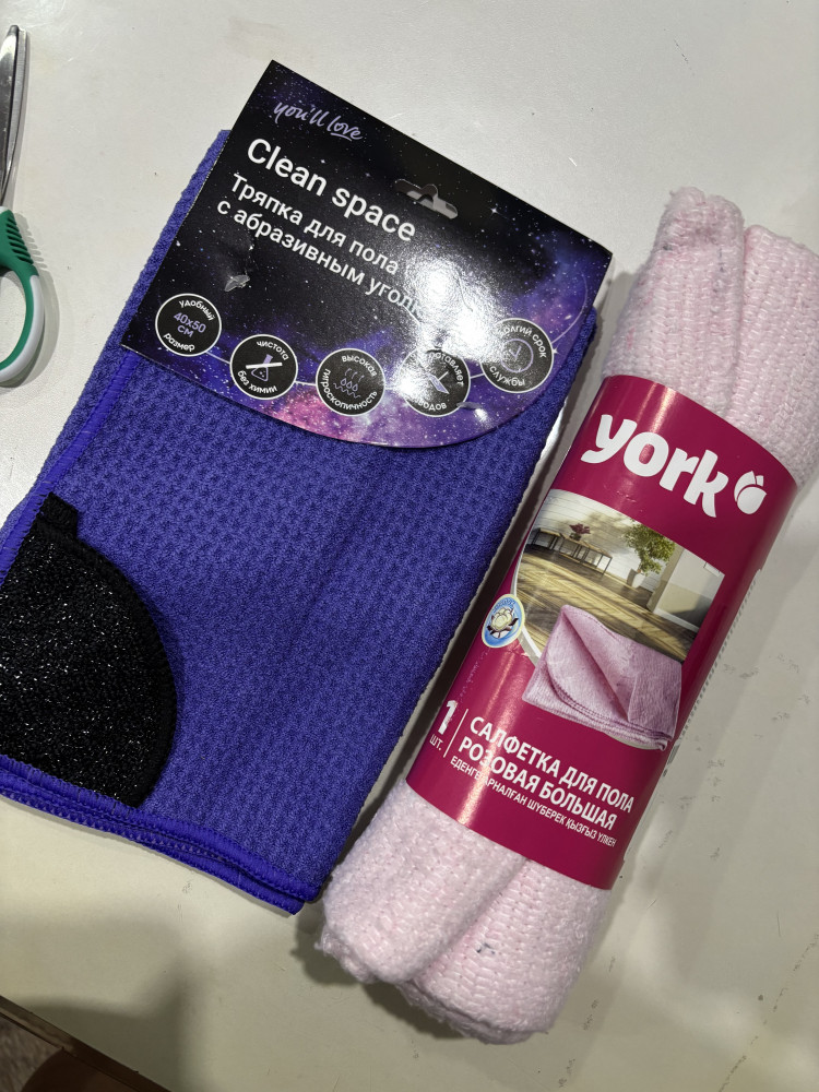 Тряпку я заценила. Хороший материал. Быстро впитывается, отлично моет под. Уголок работает как скраб для пола.