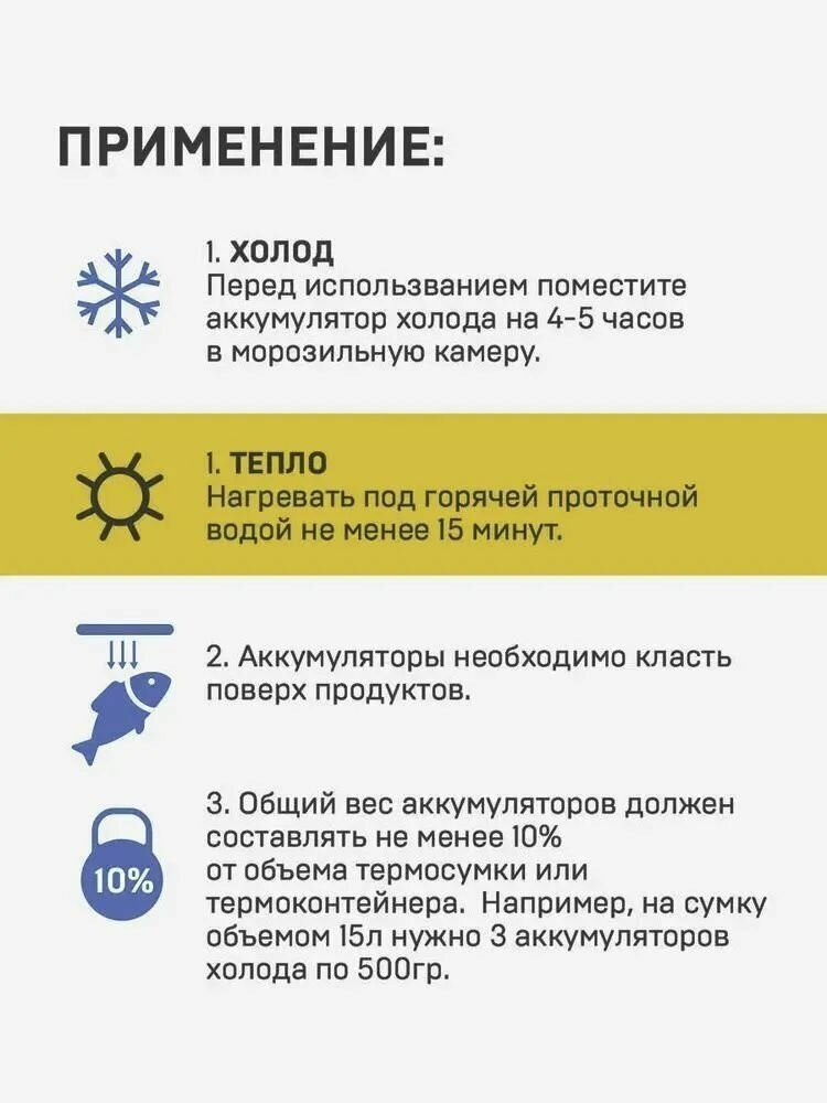 💳 Оплатить за товар можно при получении 🇰🇿 Есть бесплатная доставка по Казахстану от 1 дня 🎁 Копите бонусы с каждой покупки Аккумулятор холода Арктика является пластиковой емкостью с жидкостью голубого цвета. Состав жидкости рассчитан таким образом, чтобы обеспечить аккумулятору максимальную теплоемкость и помочь запасти наибольшее количество холода. Изделие можно использовать в термосумках и термобоксах. |