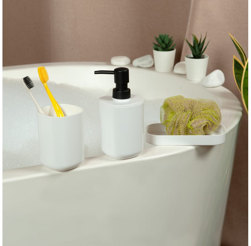 Home Queen Набор аксессуаров для ванной комнаты «Basic»В данный момент этот товар отсутствует в продаже. Возможно, у нас найдется аналогичный или похожий товар здесь. Серия: Basic Набор пластиковых аксессуаров для ванной Basic станет отличной базовой основой порядка в ванной комнате. Мыльницу можно использовать по прямому назначению — для хранения мыла, или же как органайзер для набора. Все предметы выполнены в лаконичных формах из качественного пластика. Белый цвет — максимально нейтральный и понятный. Дозатор имеет контрастную черную помпу, что создает лёгкий цветовой акцент. |