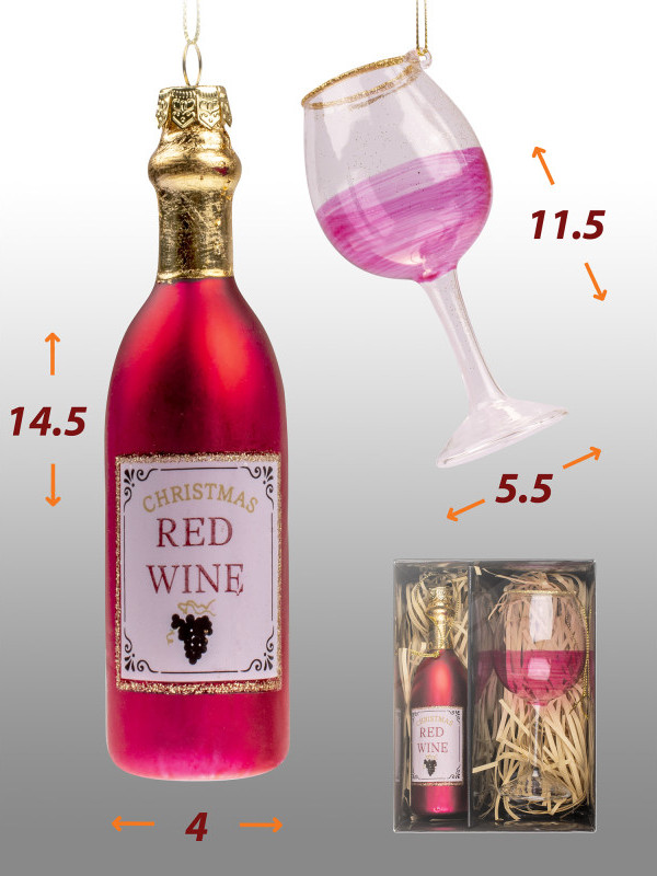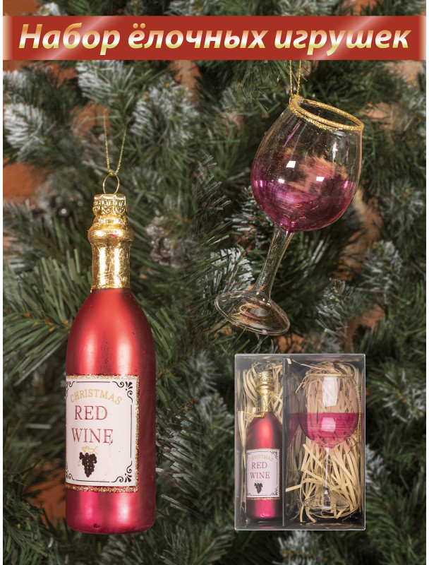 В наборе собраны 2 елочные игрушки в форме атрибутов для застолья: бокала вина с золотой окантовкой и праздничной бутылки с напитком. Они придают волшебный настрой и позволяют создавать собственные сказочные сюжеты прямо на новогодней елке.