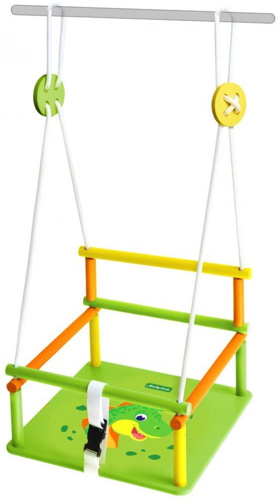 Детские качели «Комета» прекрасно подойдут для активного отдыха ребенка. Качели имеют сплошное широкое деревянное сиденье со специальным детским привлекательным дизайном. Размеры сиденья 33×32 см — обеспечивают удобную посадку ребенка и полный комфорт при качании. У данной модели на сиденье изображен Динозаврик — любимый всеми детьми персонаж.