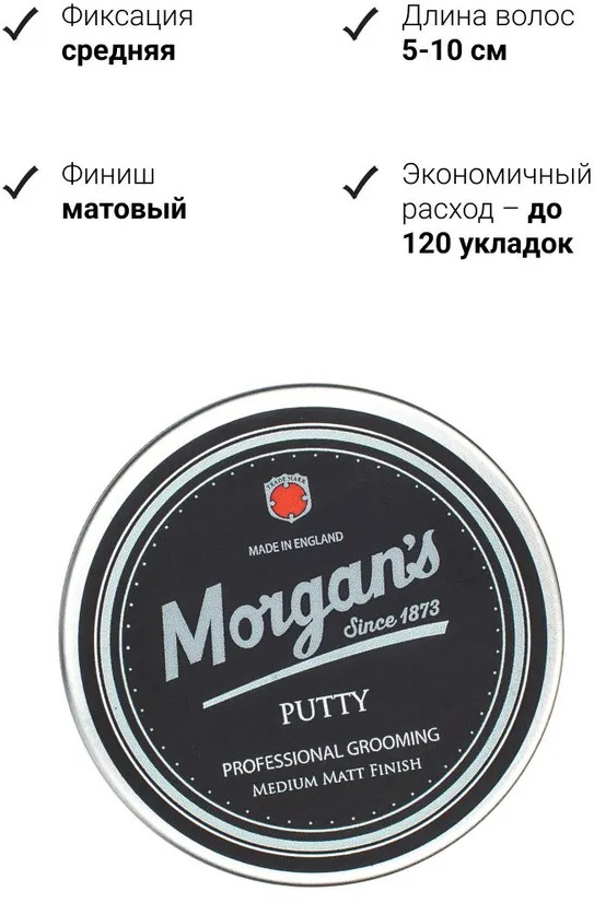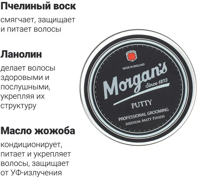 Morgan's Мастика для укладки волос «Putty»В данный момент этот товар отсутствует в продаже. Возможно, у нас найдется аналогичный или похожий товар здесь. Мастика для укладки волос со средней фиксацией и матовым финишем — для объемных причесок и дерзких, хаотичных, небрежных укладок. Содержит натуральный пчелиный воск и масло жожоба. Обладает фирменным ароматом бренда с нотками бергамота, жасмина, сандала и пачули. |