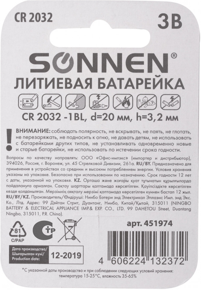 💳 Оплатить за товар можно при получении 🇰🇿 Есть бесплатная доставка по Казахстану от 1 дня 🎁 Копите бонусы с каждой покупки Литиевые дисковые батарейки SONNEN обладают повышенной емкостью и применяются в компьютерном оборудовании, пультах сигнализаций, часах, калькуляторах и другой электронной технике, требующей стабильного напряжения питания в течение длительного времени. |