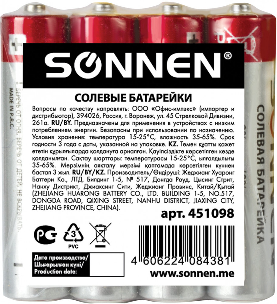 💳 Оплатить за товар можно при получении 🇰🇿 Есть бесплатная доставка по Казахстану от 1 дня 🎁 Копите бонусы с каждой покупки Солевые батарейки SONNEN популярного типоразмера AAА идеально подходят для приборов с низким потреблением энергии. Рекомендуется использовать в электронных будильниках, пультах ДУ. |