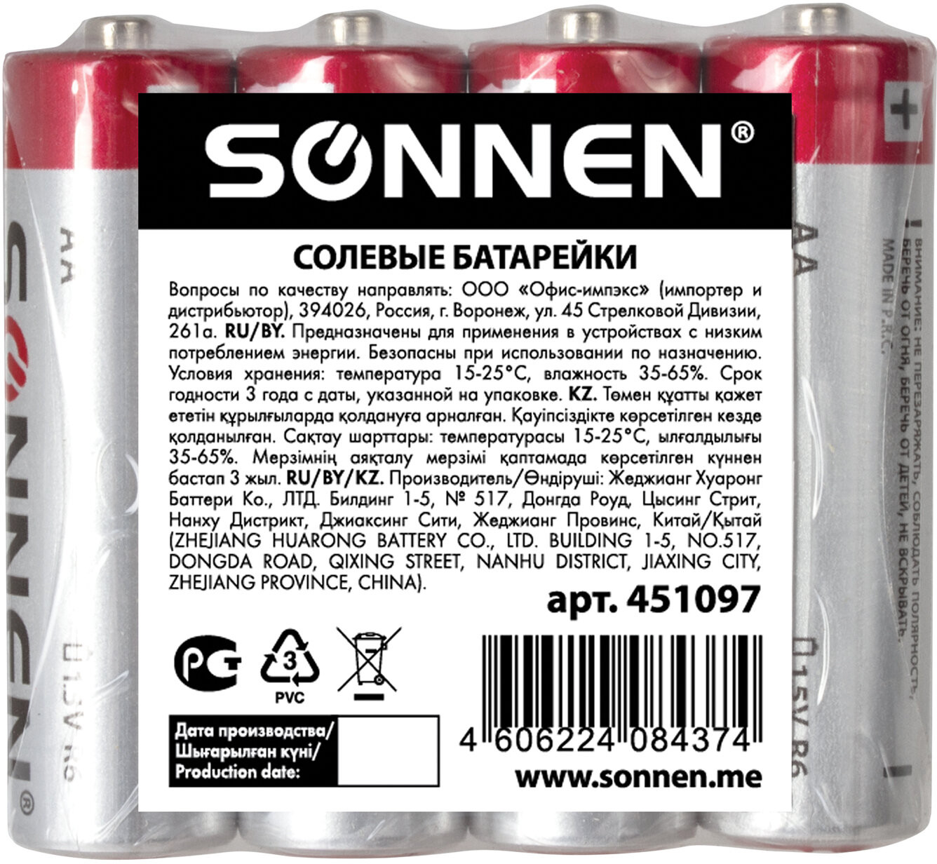 💳 Оплатить за товар можно при получении 🇰🇿 Есть бесплатная доставка по Казахстану от 1 дня 🎁 Копите бонусы с каждой покупки Солевые батарейки SONNEN популярного типоразмера AA идеально подходят для приборов с низким потреблением энергии. Рекомендуется использовать в электронных будильниках, пультах ДУ. |