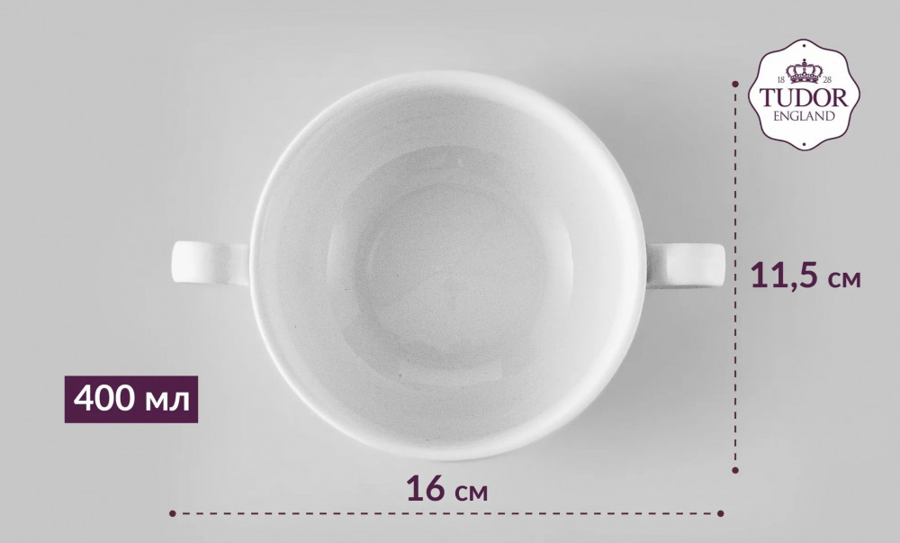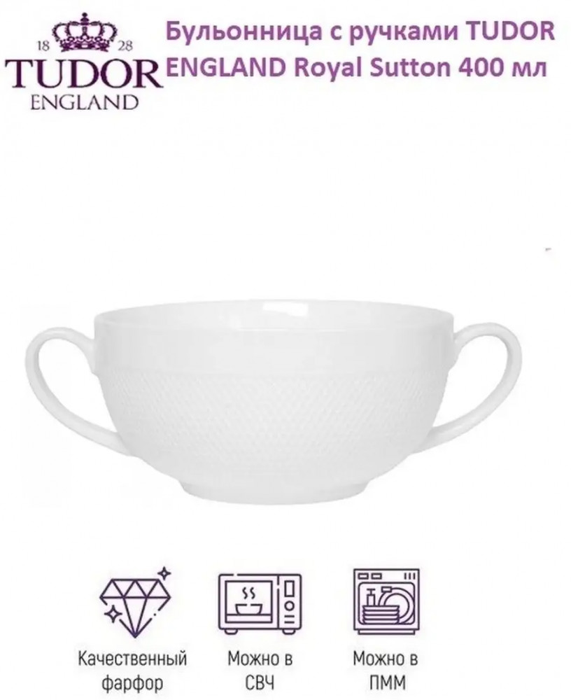 Бульонница Tudor England Royal Sutton изготовлена из высококачественного фарфора, покрытого двойным слоем глазуровки. Для красивой подачи супа на обеденный стол просто не обойтись без такого предмета сервировки, как супница. Лаконичный дизайн придется по вкусу всем, кто предпочитает утонченность и изысканность.