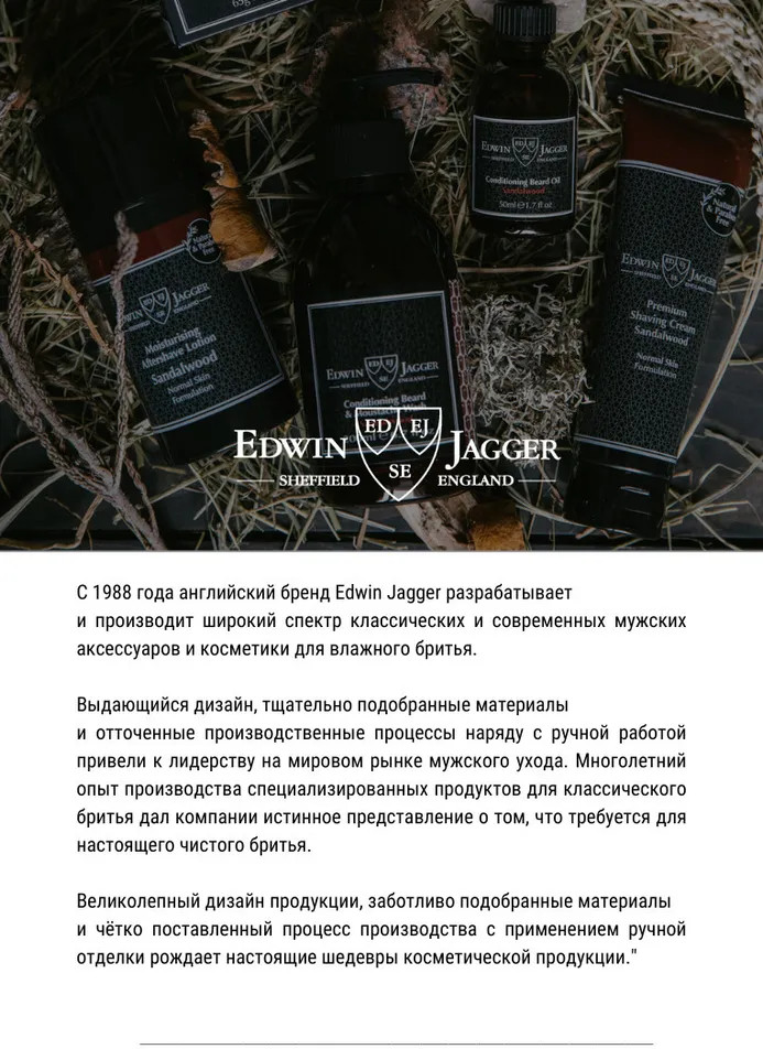 Компания Edwin Jagger была создана в 1988 году в Англии и с тех пор не теряет своей ведущей позиции среди производителей средств и инструментов для классического бритья. От продукции Edwin Jagger веет настоящими английскими традициями, которые гармонично переплелись с современным дизайном.Компания, которой доверяют миллионы покупателей, заботится о том, чтобы поддерживать свою репутацию. Мастера бренда Edwin Jagger тщательно подбирают материалы и ингредиенты для своей продукции: мягкая...