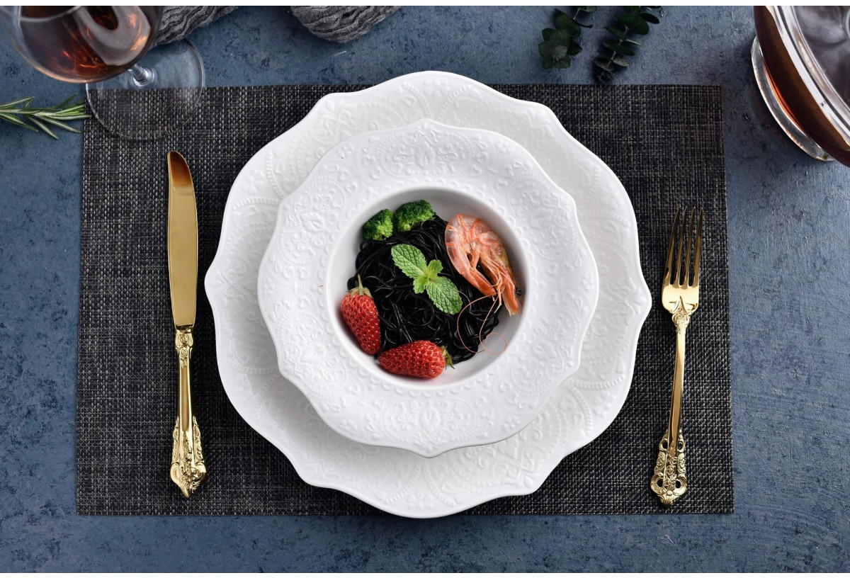 Tudor England Тарелка «Royal whitehall»красивая большая В данный момент этот товар отсутствует в продаже. Возможно, у нас найдется аналогичный или похожий товар здесь. Серия: Royal whitehall Бренд Tudor England использует только лучшие материалы и разрабатывает коллекции в сдержанном классическом дизайне. Именно поэтому продукция Tudor пользуется большой популярностью и считается универсальной. Она идеально подойдёт как для тихого семейного вечера, так и для серьёзного официального приёма. Фарфор Tudor England может быть использован в посудомоечной машине, микроволновой печи и духовом шкафу при температуре до 280°C. |