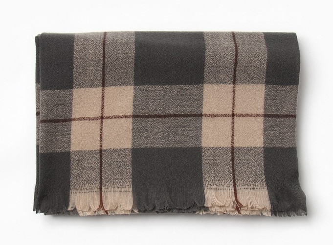 Вискозный, теплый, но не жаркий, расцветка красивая, не скатывается