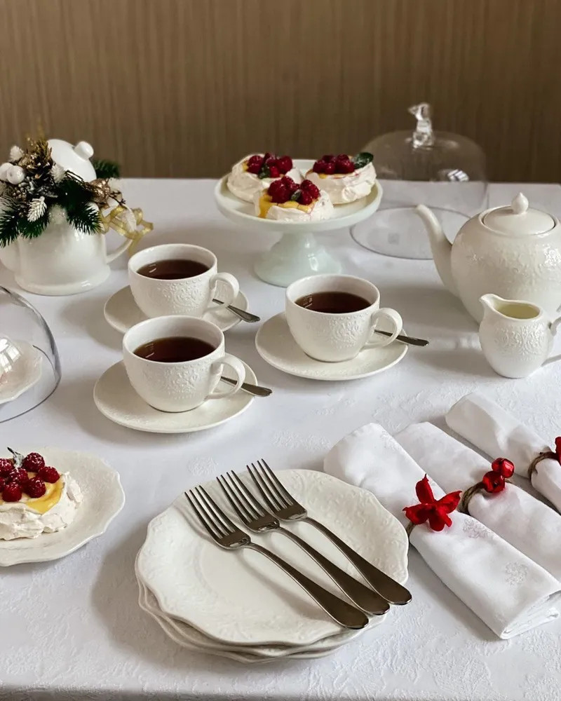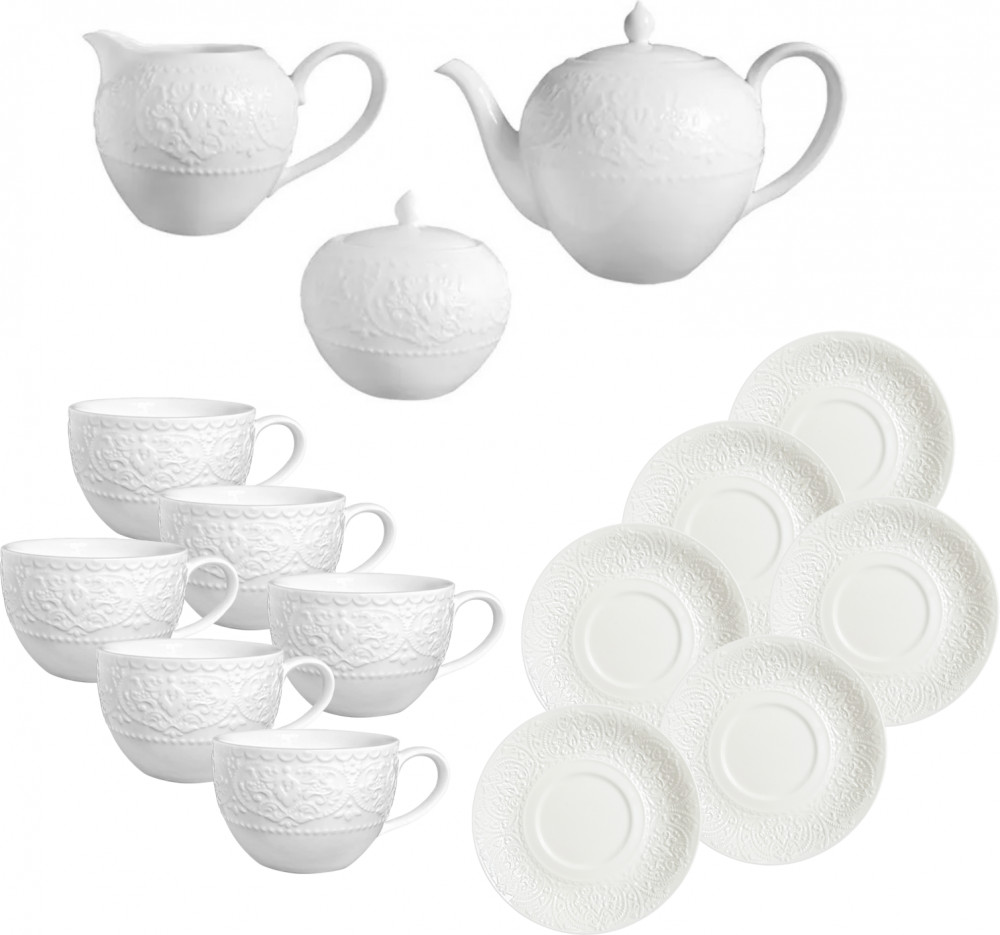 Чайный сервиз Tudor England состоит из 15 предметов на 6 персон. Коллекция Royal Whitehall изящная, привлекательная, ажурная, белоснежная и очень практичная. Все тарелки из этой коллекции можно мыть в посудомоечной машине и использовать в микроволновых печах. Фарфор Tudor England обладает такими характеристиками как: укрепленный край от сколов, особо прочная глазурь, минимальная пористость, практичность и долговечность. Это стильный выбор для сервировки вашего стола.