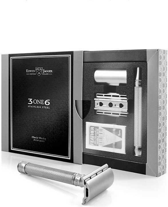 Т-образный станок из стали 316 класса Edwin Jagger с покрытием хром демонстрирует первоклассное качество бритья. Не удивительно, что изделие становится выбором огромного количества потребителей. Станок бреет чисто, работает намного дольше, чем бритвенные кассеты и одноразовые станки. Применение: В процессе бритья следует держать станок к коже под наклоном в 30 градусов. После каждого применения следует промывать изделие, чтобы сохранить функциональность лезвий.