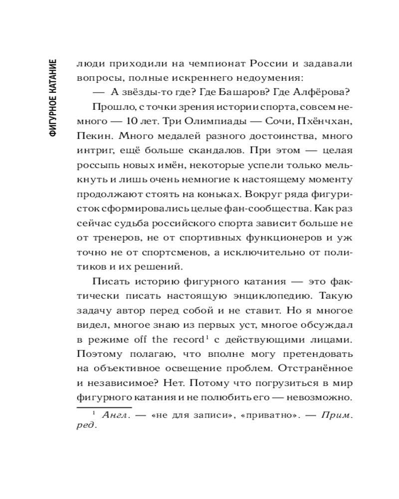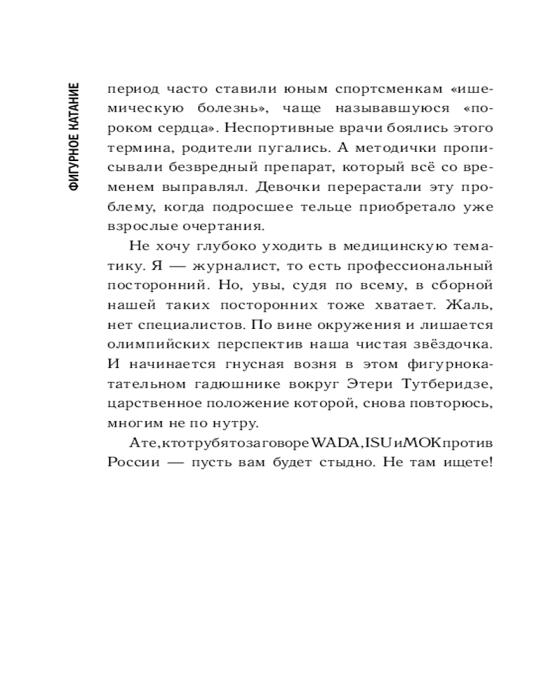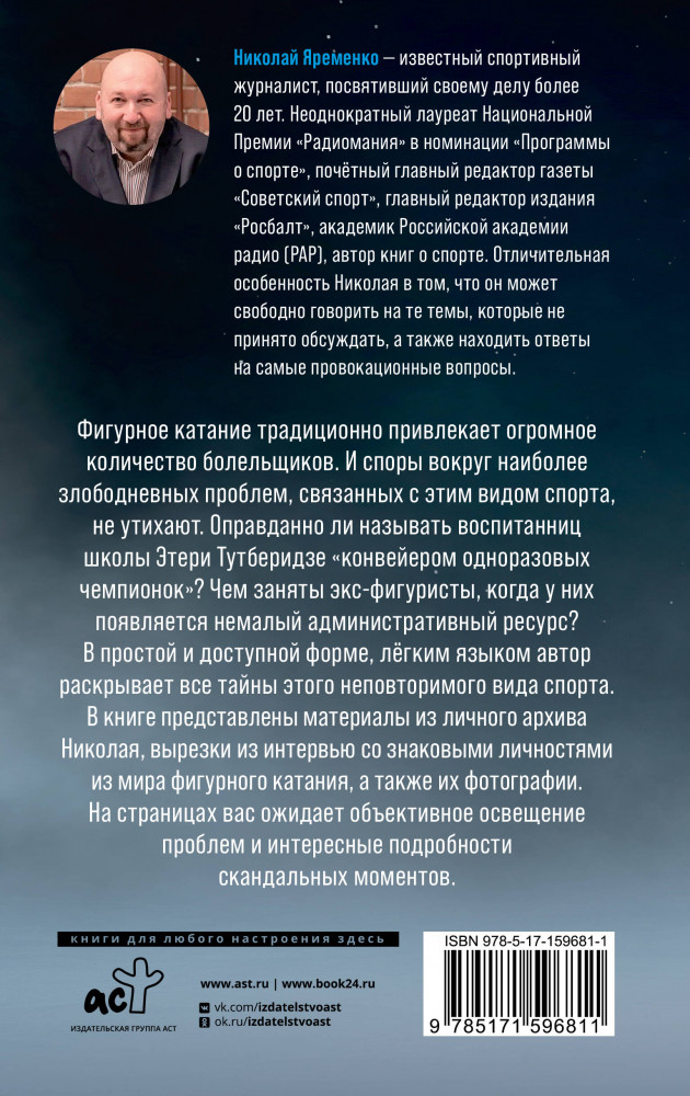 💳 Оплатить за товар можно при получении 🇰🇿 Есть бесплатная доставка по Казахстану 🎁 Копите бонусы с каждой покупки Серия: Звезды спорта Фигурное катание традиционно привлекает огромное количество болельщиков. И споры вокруг наиболее злободневных проблем, связанных с этим видом спорта, не утихают. Оправданно ли называть воспитанниц школы Этери Тутберидзе «конвейером одноразовых чемпионок»? Чем заняты экс-фигуристы, когда у них появляется немалый административный ресурс? |