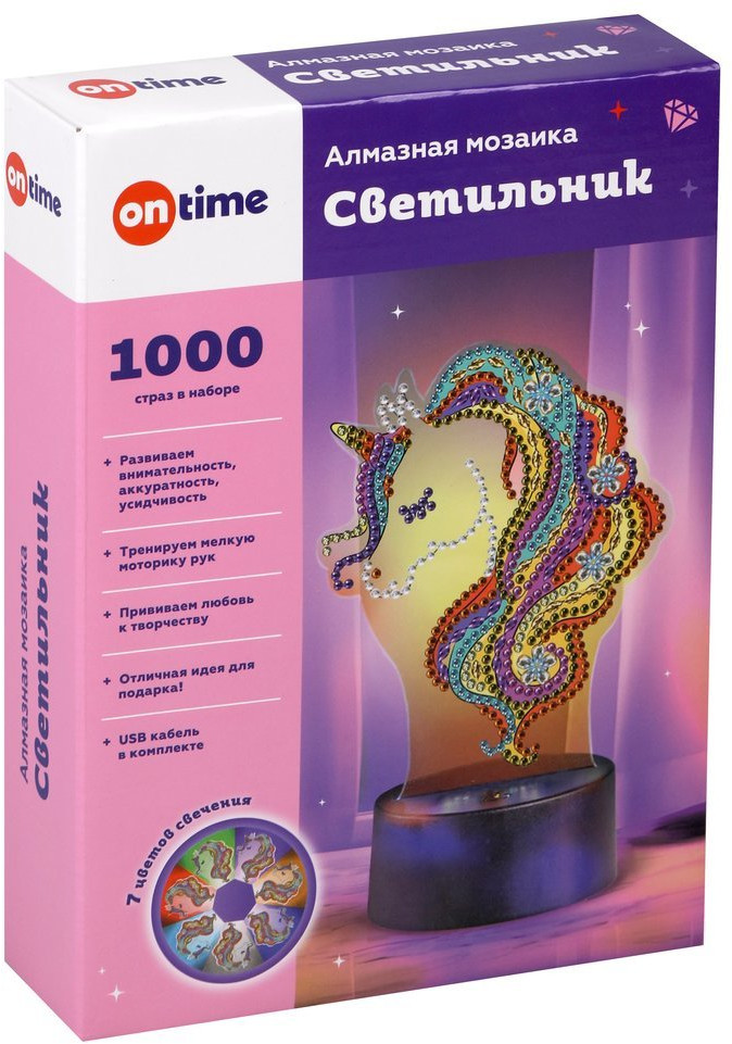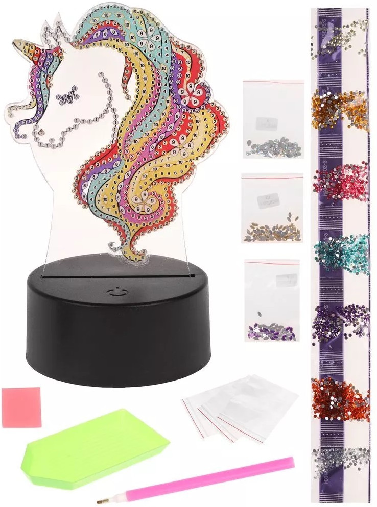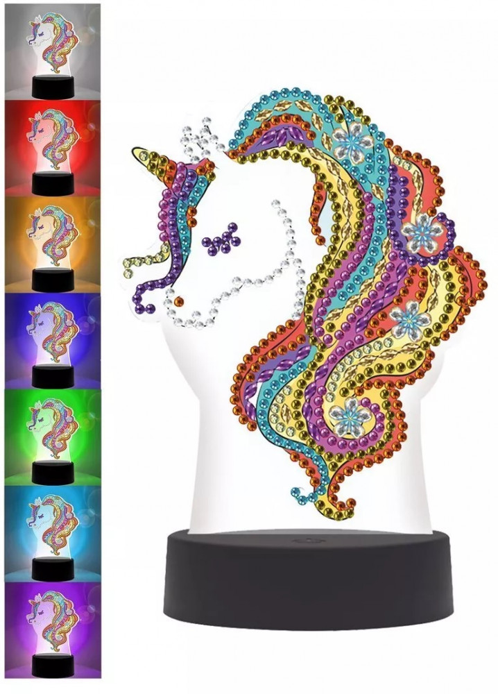 Алмазная мозаика-светильник «Единорог» — для тех, кто любит творчество! В комплекте есть все самое необходимое, чтобы создать функциональный арт-объект своими руками и украсить им интерьер. У светильника 7 вариантов подсветки — цвет можно менять по настроению! Также готовое изделие может стать оригинальным подарком.