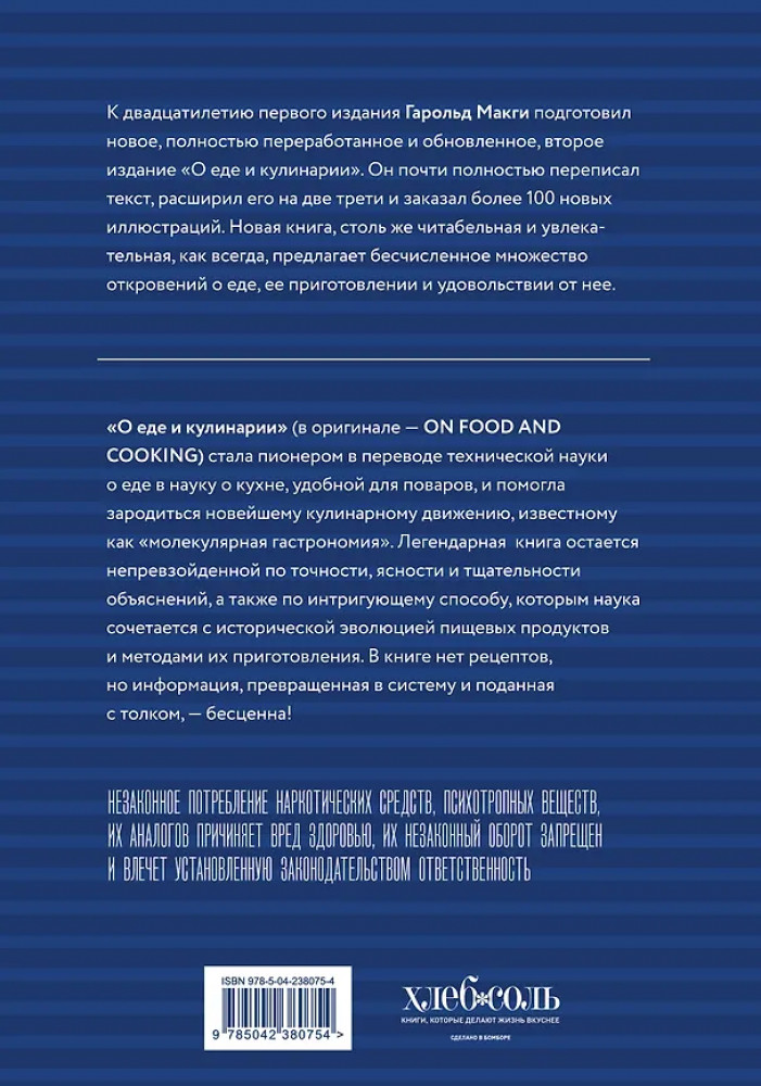 💳 Оплатить за товар можно при получении 🇰🇿 Есть бесплатная доставка по Казахстану от 1 дня 🎁 Копите бонусы с каждой покупки Серия: Легендарные кулинарные книги Книга «О еде и кулинарии» стала пионером в том, чтобы подружить научную и кулинарную сторону продуктов и процессов приготовления, и помогла зародиться кулинарному движению, известному как «молекулярная гастрономия». Хотя о кулинарии были написаны другие книги, книга Гарольда Макги остается непревзойденной по точности, ясности и тщательности объяснений, а также по интригующему способу, которым наука сочетается с исторической эволюцией пищевых продуктов и методов приготовления. |