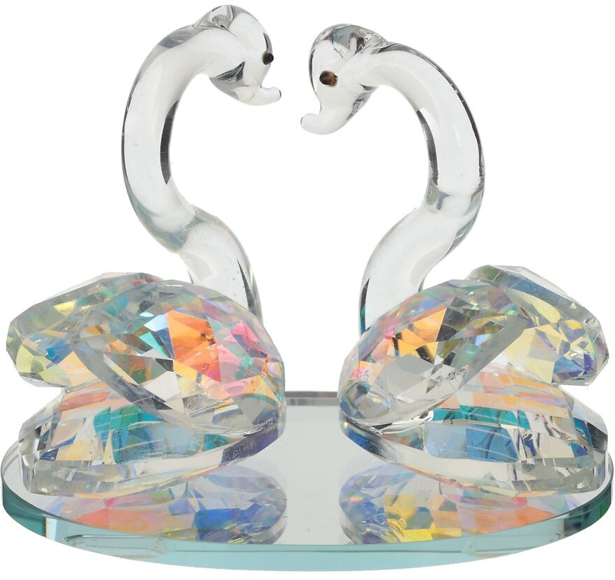 Фигурка двух Лебедей из стекла — настоящее произведение искусства. Оригинальная задумка этой фигурки на зеркальной подставке не оставит никого равнодушным и добавит красок любому интерьеру. |