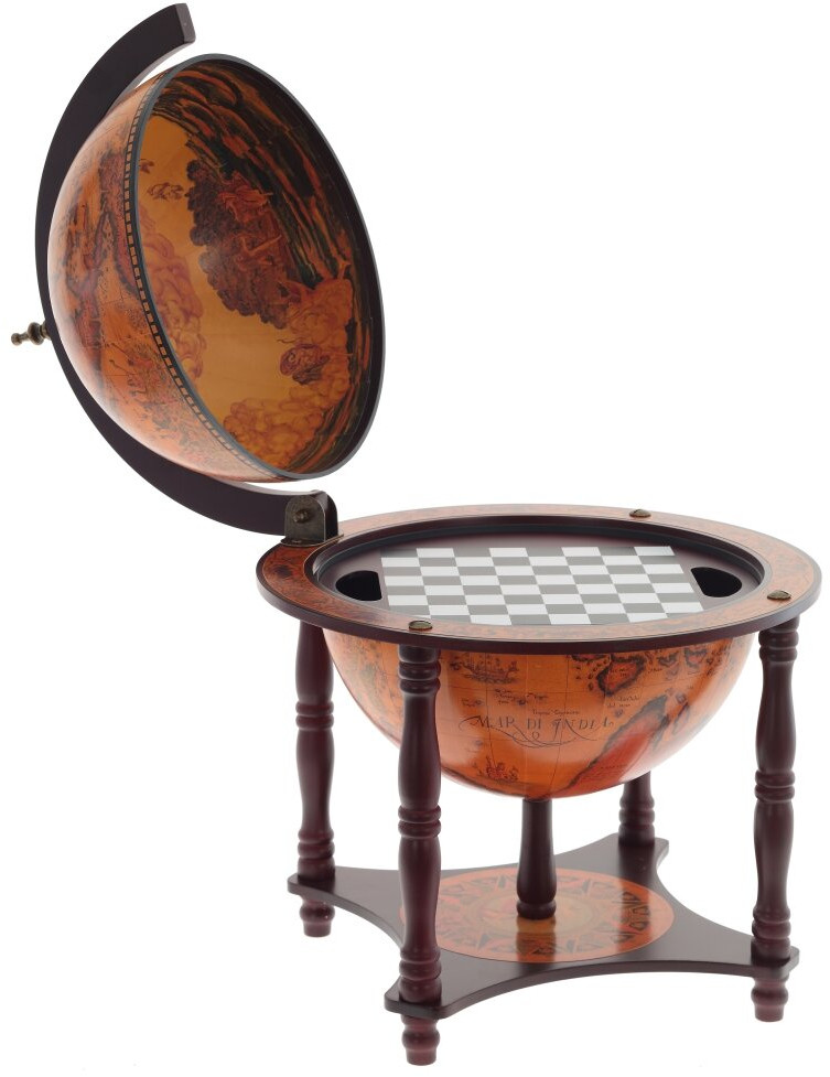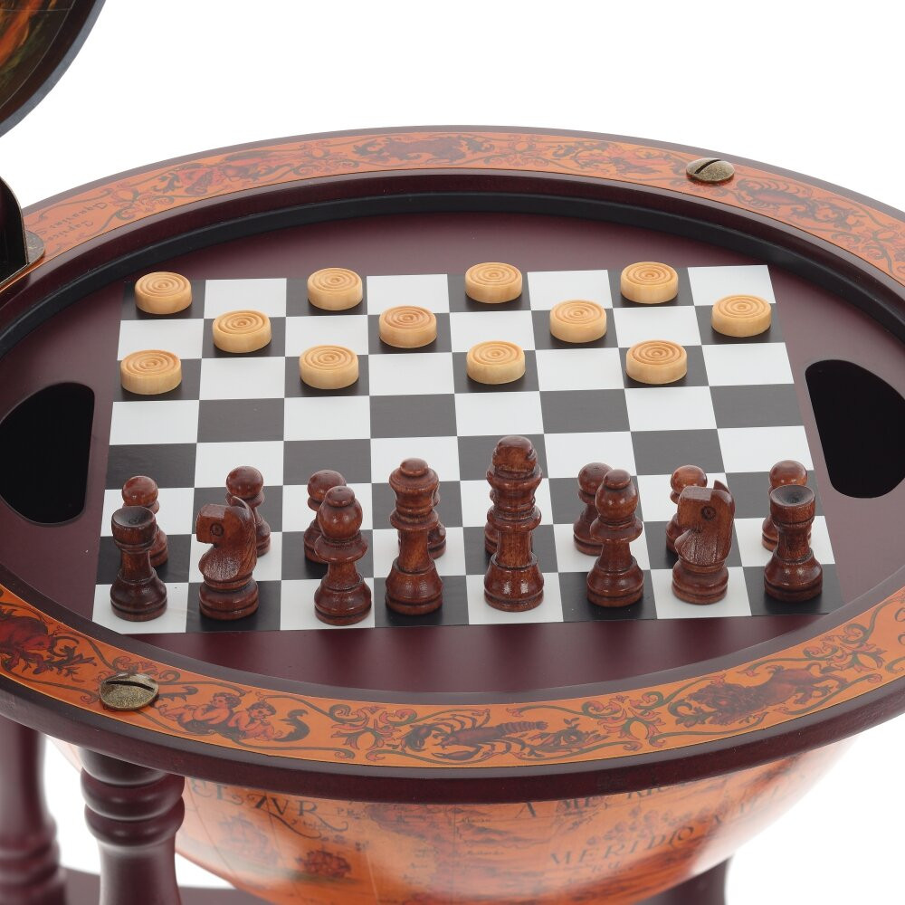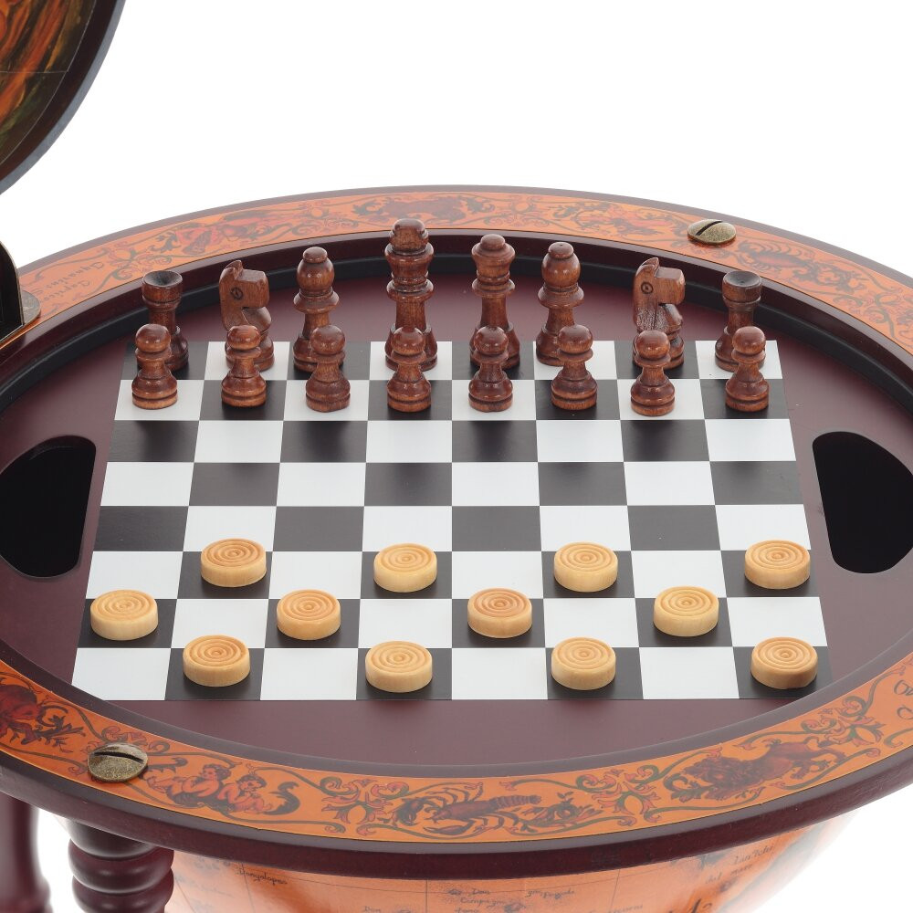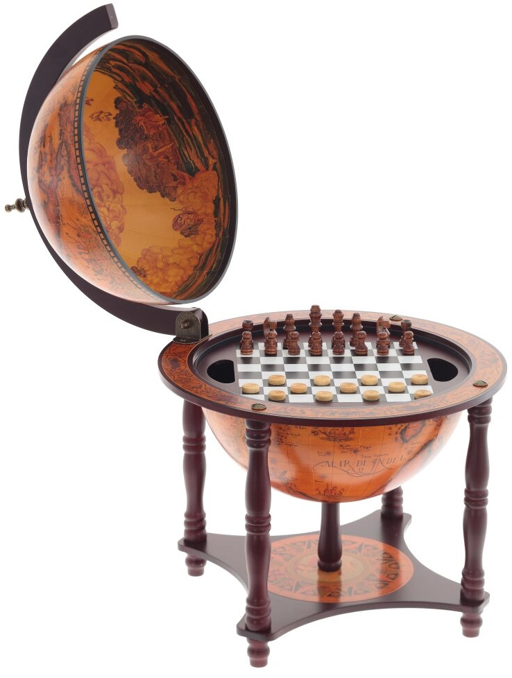 Глобус-шахматы в стиле ретро — это полезный и стильный предмет интерьера. Все его элементы выполнены вручную, поверхность с изображением карты . Шахматы, находящиеся внутри, помогут скоротать зимний вечер с другом за интересной игрой.