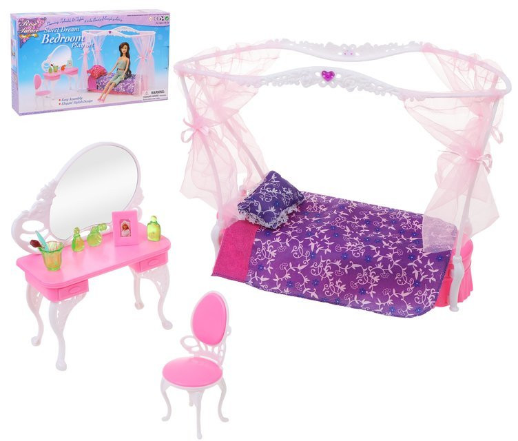 Наша игрушка Набор игровой «Спальня»В данный момент этот товар отсутствует в продаже. Возможно, у нас найдется аналогичный или похожий товар здесь. Игровой набор «Моя спальня» включает 28 предметов-деталей. В коробочке можно найти все для обустройства спальной зоны для куклы: кровать с одеялом, подушкой и балдахином, туалетный столик с зеркалом, табурет, 2 флакончика, фоторамку и вазу с цветком. |
