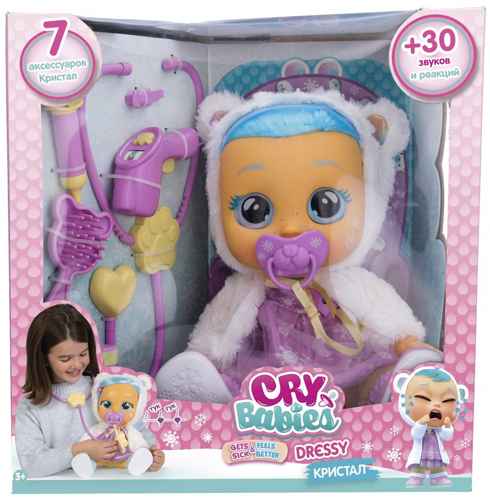 О нет, Кристал заболела! Она нуждается в твоей заботе. Помоги ей выздороветь. Дай ей правильное лекарство, чтобы она почувствовала себя лучше! Но чем же она заболела, и как ей помочь? Кристал снова станет здоровой и счастливой! Ты также можешь послушать сердцеибение Кристал при помощи специального стетоскопа. У очаровательной Кристал модный съемный наряд белого мишки и стильная обувь. Она любит двигать ручками, ножками и головой.