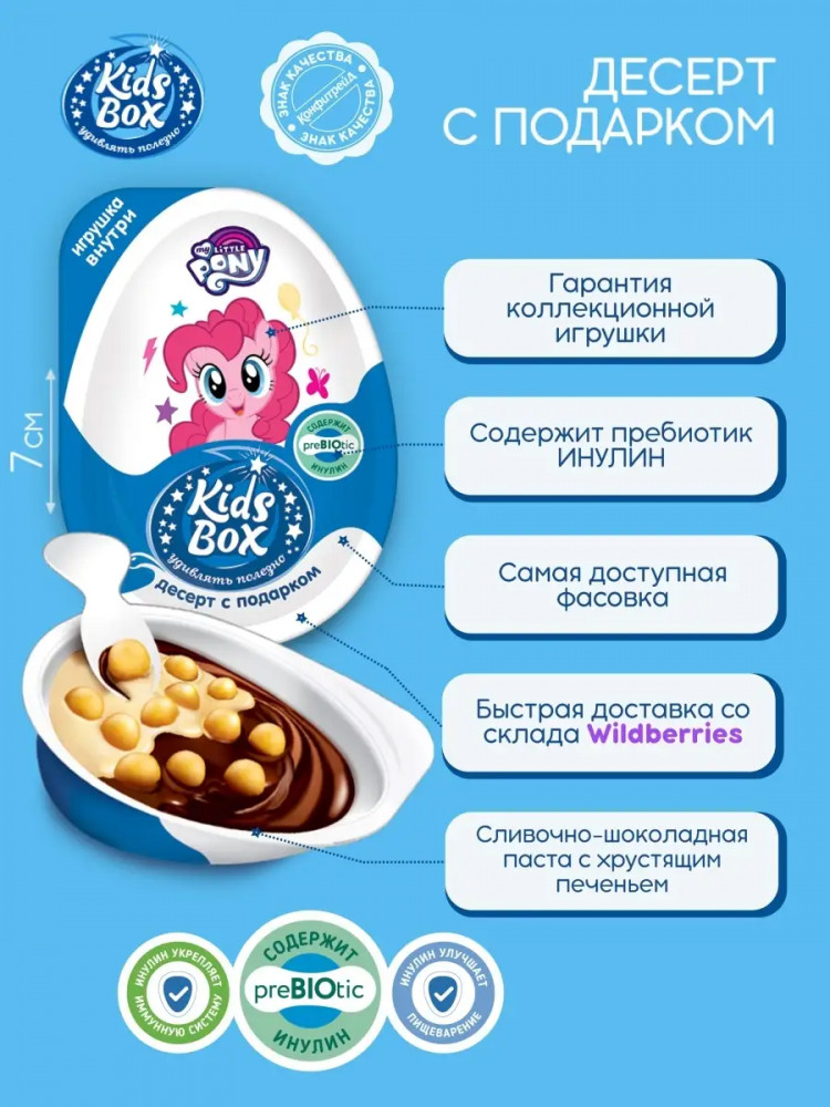 Конфитрейд Десерт с сюрпризом «My little pony»В данный момент этот товар отсутствует в продаже. Возможно, у нас найдется аналогичный или похожий товар здесь. Серия: Kids Boх Kids Boх — вкусный десерт из нежной сливочно-шоколадной пасты с хрустящим печеньем и коллекционным подарком. В составе десерта — полезный пребиотик (инулин) для укрепления и развития детского организма. Кидс бокс состоит их двух капсул. В одной половинке — полезное лакомство, в другой подарок — коллекционная игрушка в виде популярного персонажа и ложечка для десерта. Актуальные детские лицензии. Большие коллекции красочных игрушек. Нравится детям, одобрено родителями! |