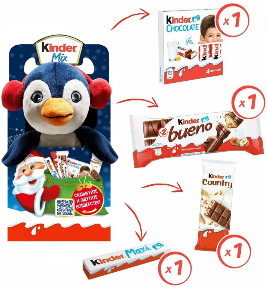 Подарок на Новый Год стал доброй традицией и веской причиной ждать еще сильнее праздника. Сладкие новогодние подарки прекрасная возможность порадовать детей разными вкусностями и положительными эмоциями. Яркие и привлекательные упаковки изделий от торговой марки Kinder порадуют вас своим внешним видом, даря предвкушение веселья и праздника.