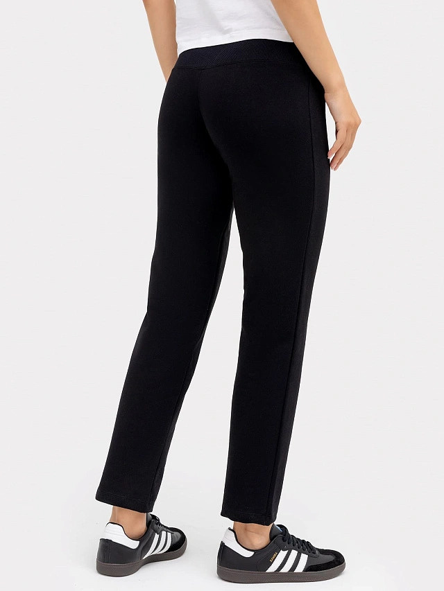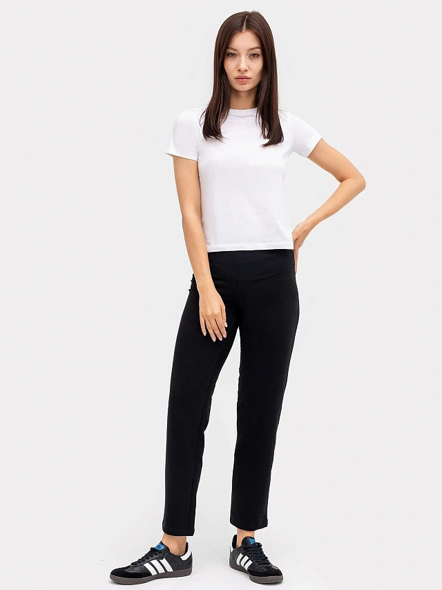 брючки имеют высокую посадку и широкую резинку. очень комфортно сидят. ткань плотная. качество отличное
