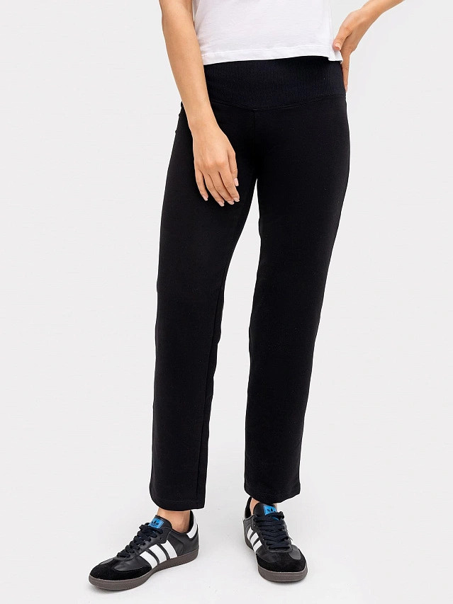 брючки имеют высокую посадку и широкую резинку. очень комфортно сидят. ткань плотная. качество отличное